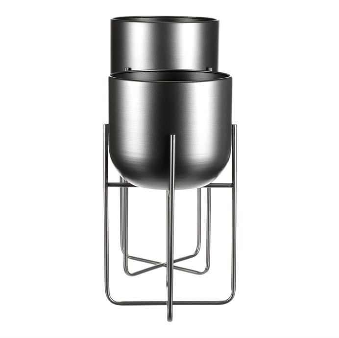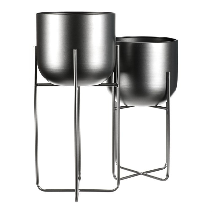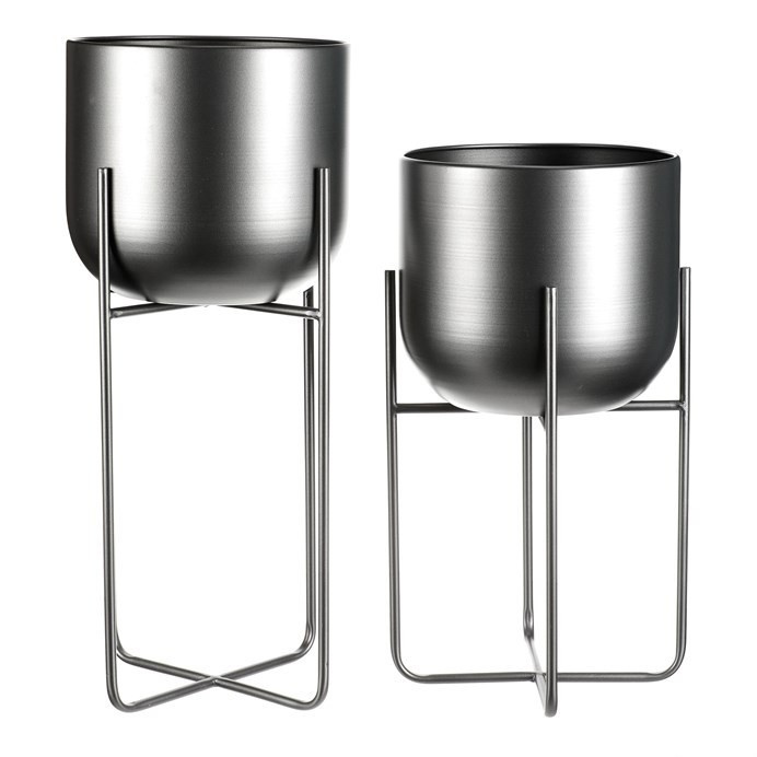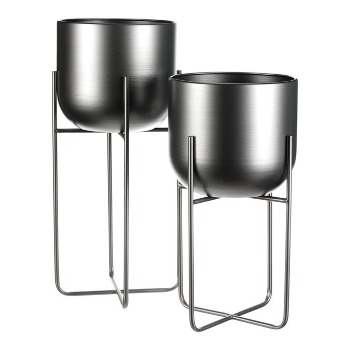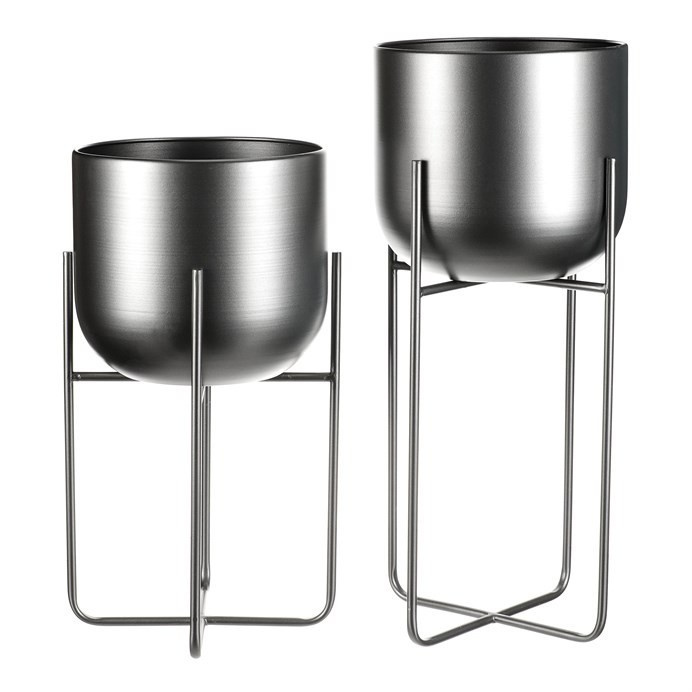 Set 2 ks kovových stojanů na květiny. Jedná se o interiérové provedení. Konstukce a obal na květináč je kovový, v povrchové úpravě antracitový satin.