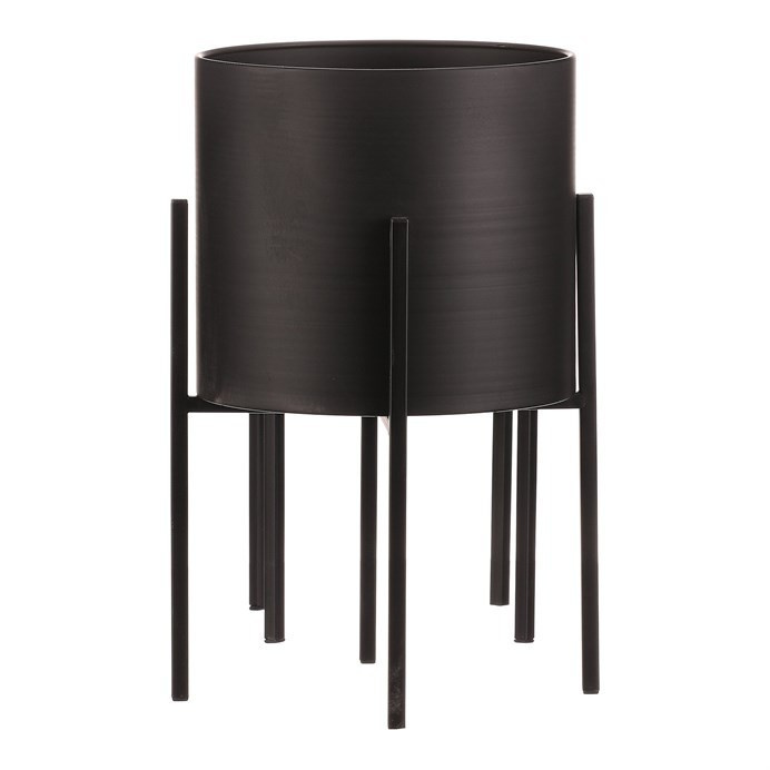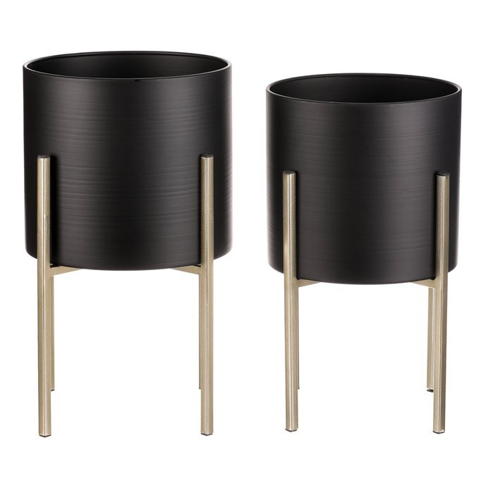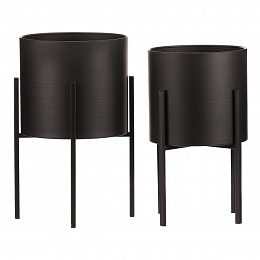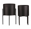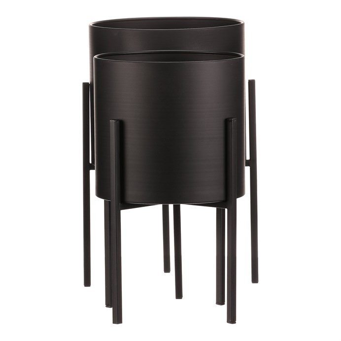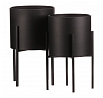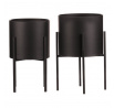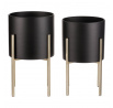Set 2 ks kovových stojanů na květiny. interiérové provedení. Konstrukce a obal na květináč je kovový. Obal je v černém matu a nohy taktéž v černé matné barvě.