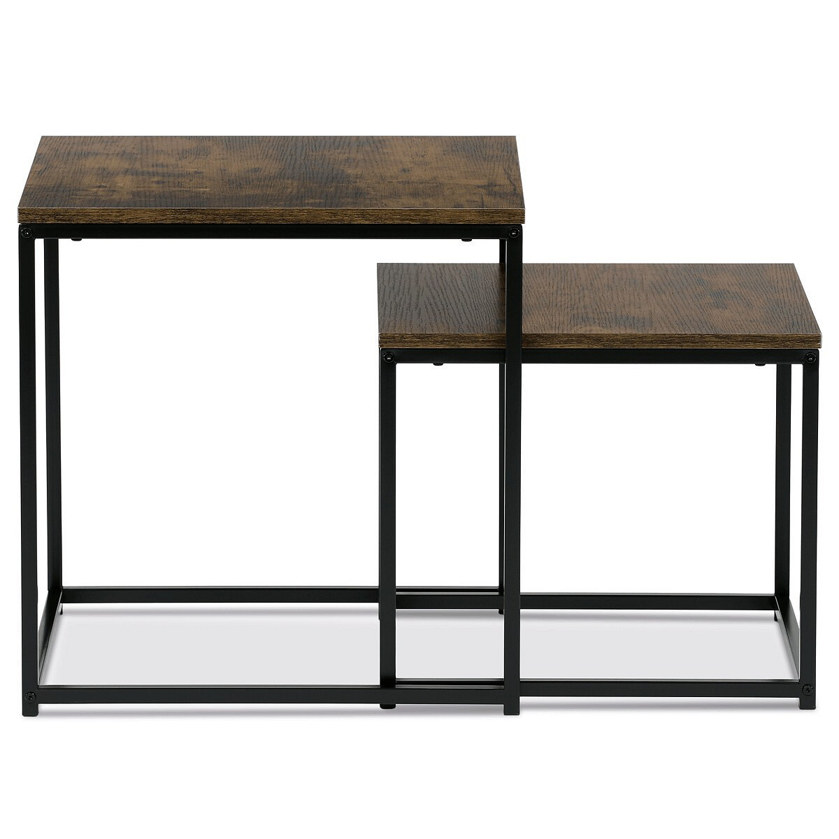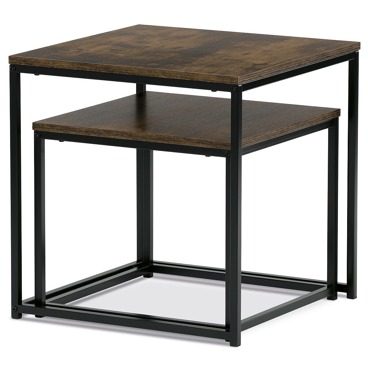 Set dvou konferenčních stolků značky Autronic je ideální volbou pro moderní i industriální interiéry. Stoly se vyznačují minimalistickým designem s pevnou kovovou konstrukcí v černé barvě a deskou s přírodním dekorem dřeva. Díky praktickému provedení lze stolky snadno využít samostatně nebo společně, což zajišťuje variabilitu při uspořádání prostoru. Tento set přináší nejen funkčnost, ale také styl, který zaručeně oživí každý obývací pokoj. Skvělý doplněk pro útulný a moderní domov!