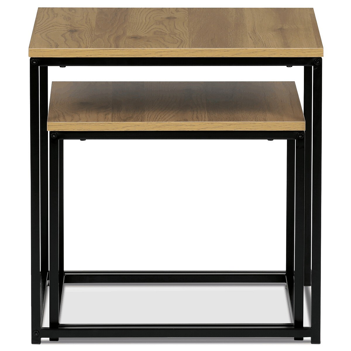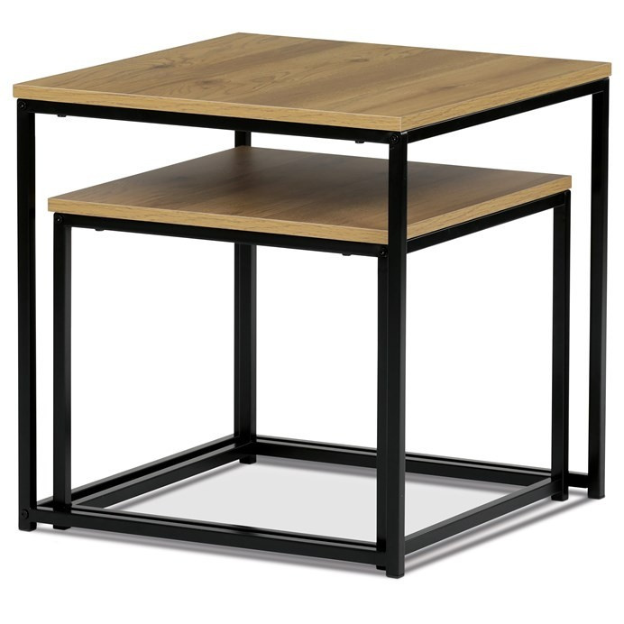 Sada 2 odkládacích stolků Autronic je mnohem víc než pouhé odkládací stolky - ztělesňuje harmonii praktičnosti, stylu a sofistikovanosti. Tyto stolky s dekorem divokého dubu, který zdobí jejich robustní povrch z materiálu MDF, poskytují vynikající kombinaci estetického potěšení a funkčnosti pro každé prostředí. Deska stolku dokresluje přírodní vibrace dekoru divokého dubu a dodá vašemu pokoji nebo kanceláři klidnou atmosféru. Inspirace designu Autronic vychází z motivů industriálního stylu. Stoly se pyšní černými kovovými nohami kruhového tvaru, které nejen zajišťují stabilitu, ale také přispívají k odvážnému a průkopnickému vizuálnímu dojmu ze soupravy. Deska čtvercového tvaru poskytuje velkorysý úložný prostor a zároveň vyzařuje moderní a špičkový vzhled. Investice do kusů nábytku Autronic je zárukou bezkonkurenční kvality a dlouhé životnosti. Ať už zařizujete firemní prostory, nebo zvelebujete svůj domov, tyto univerzální kousky od společnosti Autronic zaručeně skvěle uspokojí vaše potřeby.