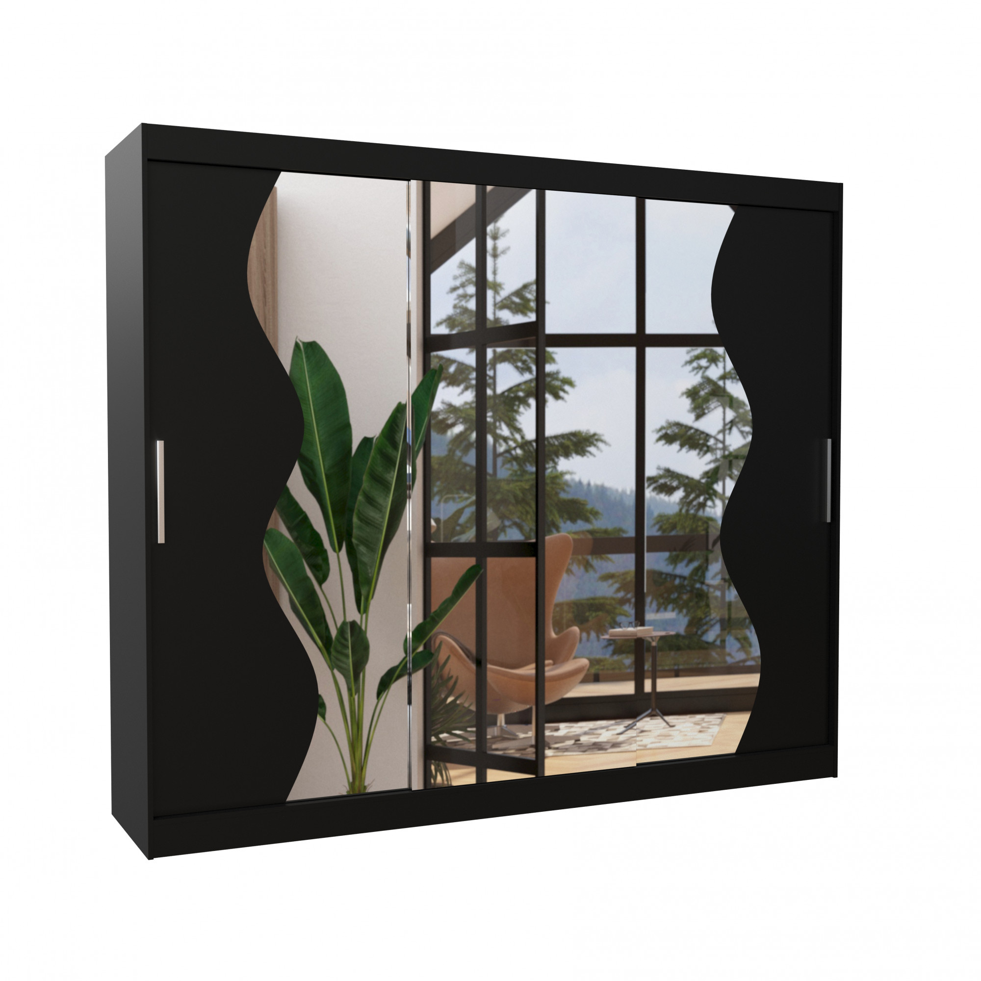 Šatní skříň s posuvnými dveřmi a zrcadlem SHARON 250 Černá+Černá