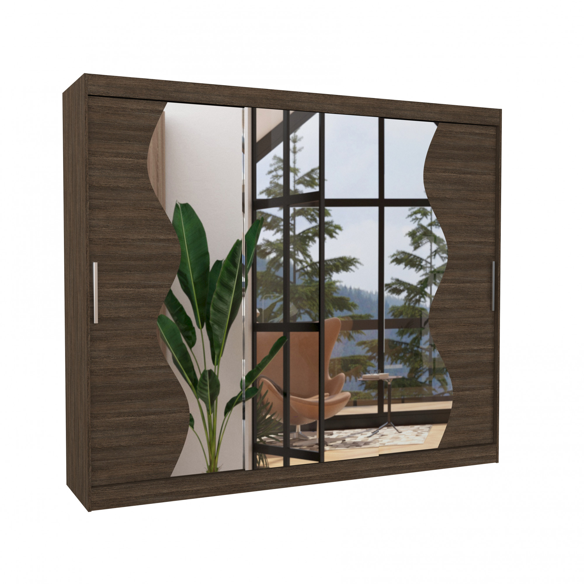 Šatní skříň s posuvnými dveřmi a zrcadlem SHARON 250 Choco+Choco