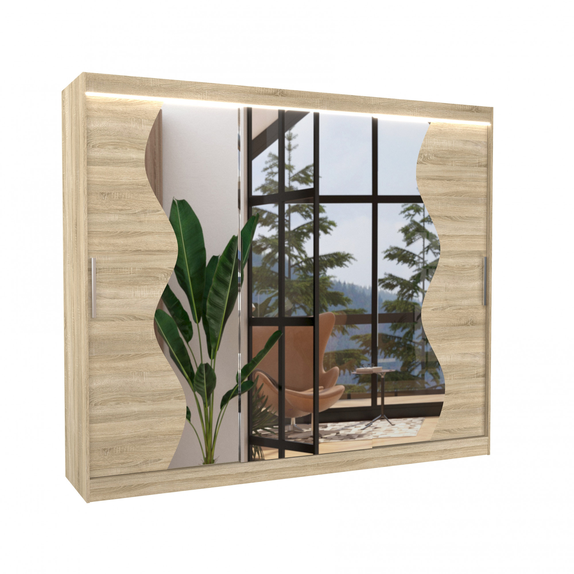 Posuvná skříň se zrcadlem a LED osvětlením SHARON 250 Sonoma+Sonoma