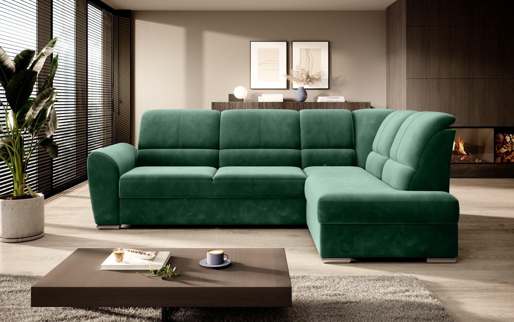 Rohová sedací souprava Siber je ideálním řešením pro ty, kteří si cení pořádku a organizace. Pomáhá šetřit místo díky velkému úložnému prostoru na lůžkoviny. Jeho vysoce profilované nastavitelné opěrky zad, zdobené stylovým prošíváním, zajistí, že i hodiny relaxace u vašeho oblíbeného televizního seriálu budou pohodlným a komfortním zážitkem. Rozměry rohové sedací soupravy: 270 x 186 x 93 cm, což umožňuje klidný odpočinek pro větší počet lidí bez nutnosti přidávat další sedací nábytek. Kromě toho se rohová sedačka může stát dalším lůžkem díky skládací funkci spaní s plochou 205 x 125 cm. Mechanismus skládání typu delfín použitý v tomto kusu nábytku je skvělý a jednoduchý způsob, jak proměnit rohovou pohovku na plnohodnotnou postel. Za zmínku stojí také nastavitelné opěrky zad, které vám mohou pomoci pohodlně relaxovat při čtení knihy nebo sledování televize. Zajímavými prvky tohoto kusu nábytku jsou jeho 5 cm vysoké dřevěné nohy a také sedák vyplněný pěnou T30, která poskytuje vynikající pružnost a vysokou hustotu.