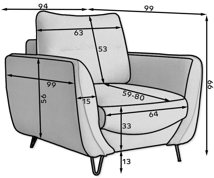 Vyrobeno z kvalitní tkaniny, křeslo Silva nabízí nejen estetický vzhled, ale také maximální pohodlí. Materiál je příjemný na dotek a zajišťuje dlouhou životnost křesla. S šířkou 94 cm, výškou 99 cm a hloubkou 99 cm poskytuje dostatek prostoru pro pohodlné sezení. Výška sedu 46 cm je ideální pro snadné vstávání a usedání.