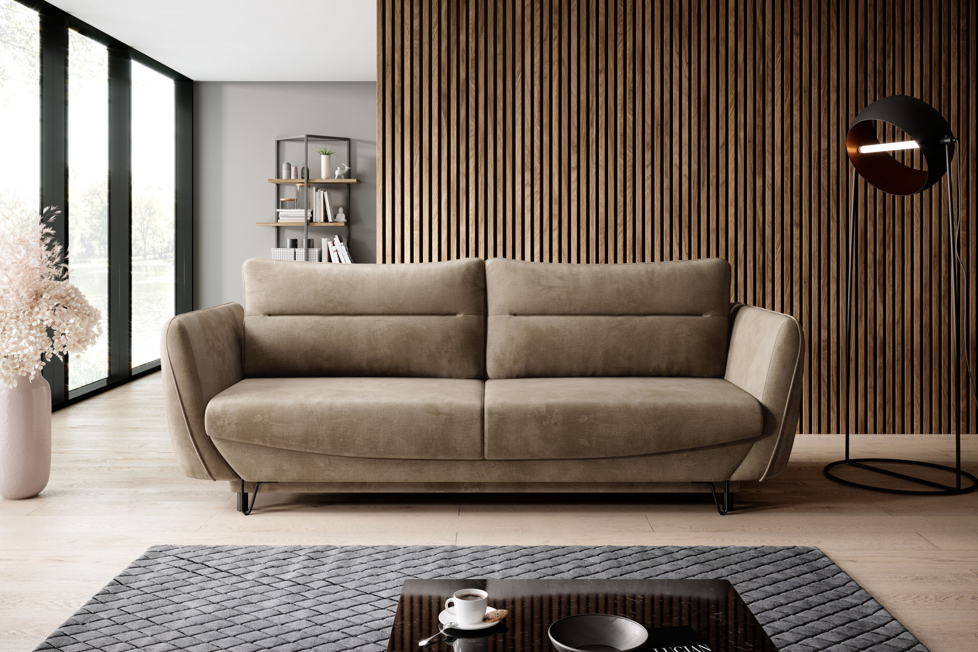 Pohovka Silva je kombinací jednoduché, přesto nekonvenční formy a vysoce kvalitních materiálů. Navrženo pro ty, kteří milují pohodlí a eleganci. Tento jednoduchý, ale elegantní kus nábytku je dobrou volbou nejen pro obývací pokoj, ale také pro kancelářské prostory nebo hotely.Zvláště pozoruhodné v designu pohovky jsou moderní dlouhé nohy z černé oceli. Díky nim a možnosti volby barvy látky se nábytek snadno přizpůsobí mnoha uspořádáním. Kromě svých estetických kvalit se Silva může pochlubit také funkčností díky prostornému úložnému prostoru na lůžkoviny. Zajímavý design nábytku je také dobrým řešením pro minimalistické interiéry, protože jeho rozměry jsou: 236 x 95 x 90 centimetrů. Silva je vybavena pohodlným opěradlem ve formě polštářů s výplní z pěny T25, v kombinaci se sedacími polštáři s vysoce elastickou pěnou HR. Navíc má pohovka funkci spaní na ploše 200 x 145 centimetrů a DL automatiku pro snadné rozložení nábytku.