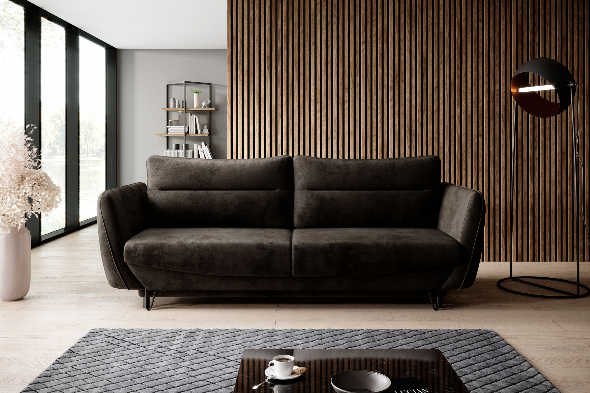 Pohovka Silva je kombinací jednoduché, přesto nekonvenční formy a vysoce kvalitních materiálů. Navrženo pro ty, kteří milují pohodlí a eleganci. Tento jednoduchý, ale elegantní kus nábytku je dobrou volbou nejen pro obývací pokoj, ale také pro kancelářské prostory nebo hotely.Zvláště pozoruhodné v designu pohovky jsou moderní dlouhé nohy z černé oceli. Díky nim a možnosti volby barvy látky se nábytek snadno přizpůsobí mnoha uspořádáním. Kromě svých estetických kvalit se Silva může pochlubit také funkčností díky prostornému úložnému prostoru na lůžkoviny. Zajímavý design nábytku je také dobrým řešením pro minimalistické interiéry, protože jeho rozměry jsou: 236 x 95 x 90 centimetrů. Silva je vybavena pohodlným opěradlem ve formě polštářů s výplní z pěny T25, v kombinaci se sedacími polštáři s vysoce elastickou pěnou HR. Navíc má pohovka funkci spaní na ploše 200 x 145 centimetrů a DL automatiku pro snadné rozložení nábytku.