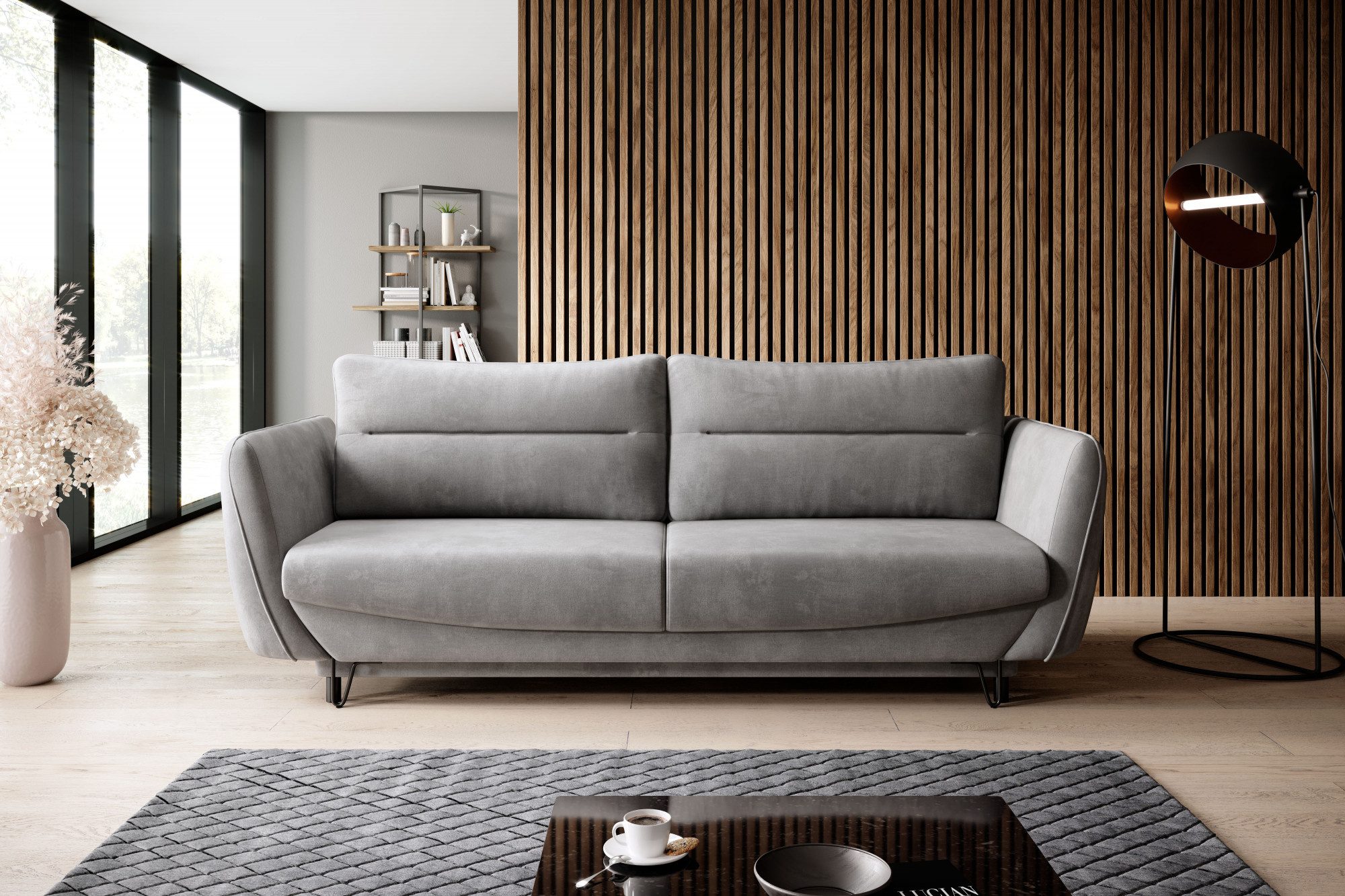 Pohovka Silva je kombinací jednoduché, přesto nekonvenční formy a vysoce kvalitních materiálů. Navrženo pro ty, kteří milují pohodlí a eleganci. Tento jednoduchý, ale elegantní kus nábytku je dobrou volbou nejen pro obývací pokoj, ale také pro kancelářské prostory nebo hotely.Zvláště pozoruhodné v designu pohovky jsou moderní dlouhé nohy z černé oceli. Díky nim a možnosti volby barvy látky se nábytek snadno přizpůsobí mnoha uspořádáním. Kromě svých estetických kvalit se Silva může pochlubit také funkčností díky prostornému úložnému prostoru na lůžkoviny. Zajímavý design nábytku je také dobrým řešením pro minimalistické interiéry, protože jeho rozměry jsou: 236 x 95 x 90 centimetrů. Silva je vybavena pohodlným opěradlem ve formě polštářů s výplní z pěny T25, v kombinaci se sedacími polštáři s vysoce elastickou pěnou HR. Navíc má pohovka funkci spaní na ploše 200 x 145 centimetrů a DL automatiku pro snadné rozložení nábytku.