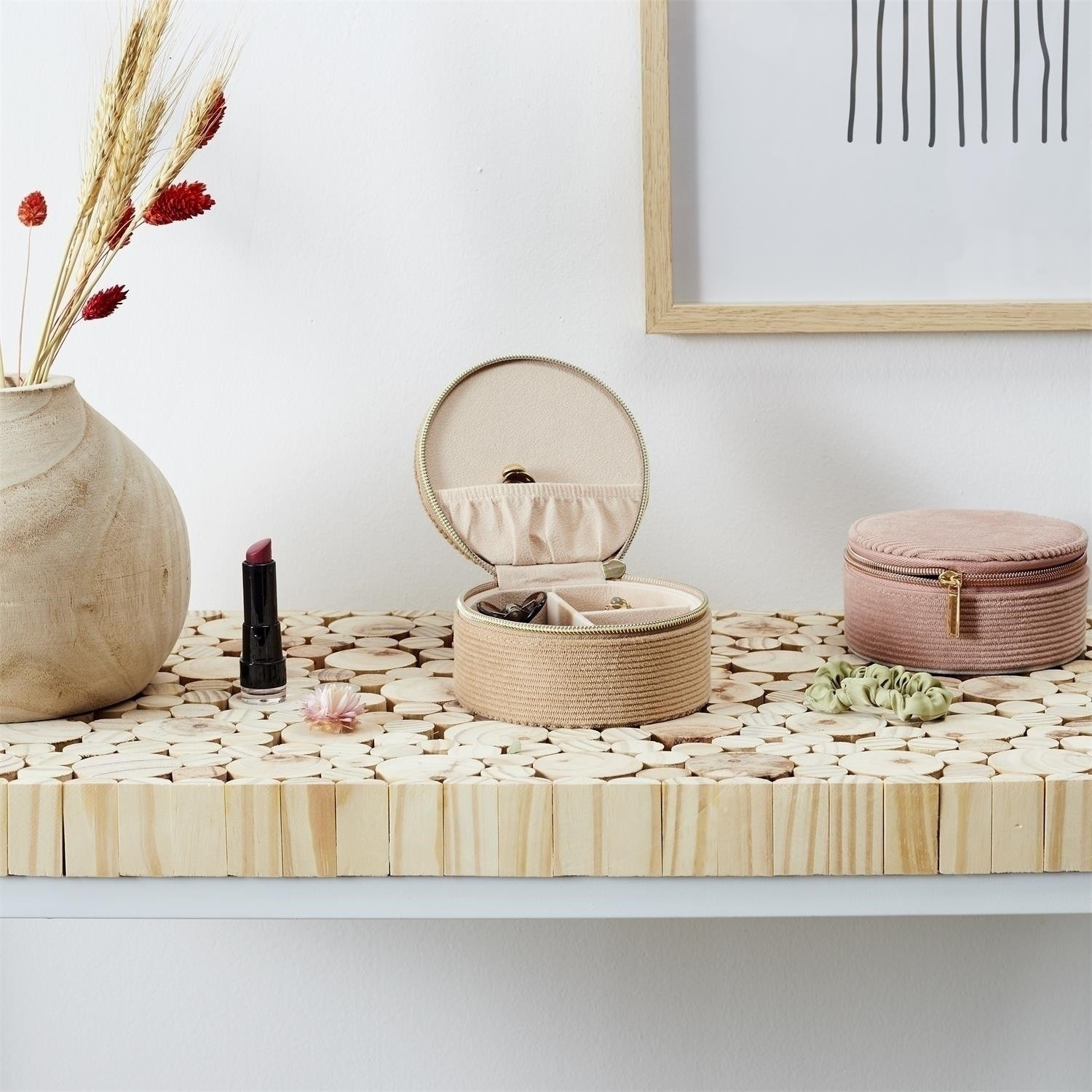 Manšestrová šperkovnice na zip je ideální organizér na šperky. Šperkovnice je vybavena přihrádkami na prsteny, náramky a náušnice. Šperkovnice má na vnitřní straně víka namontovanou kapsičku na větší náramky nebo náhrdelníky. Dostupná ve 3 barvách.
