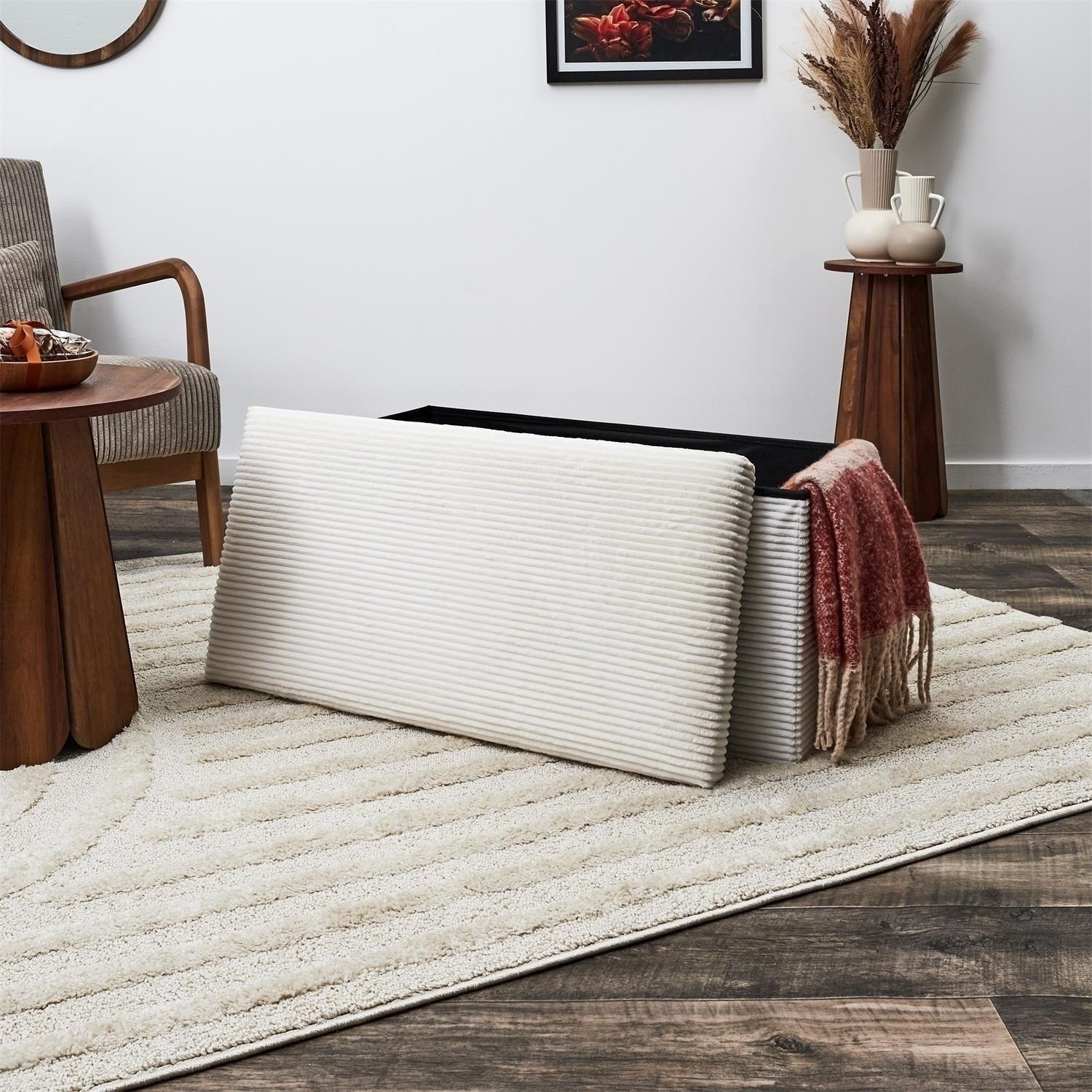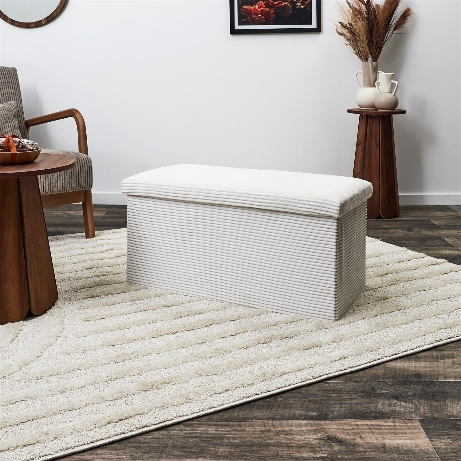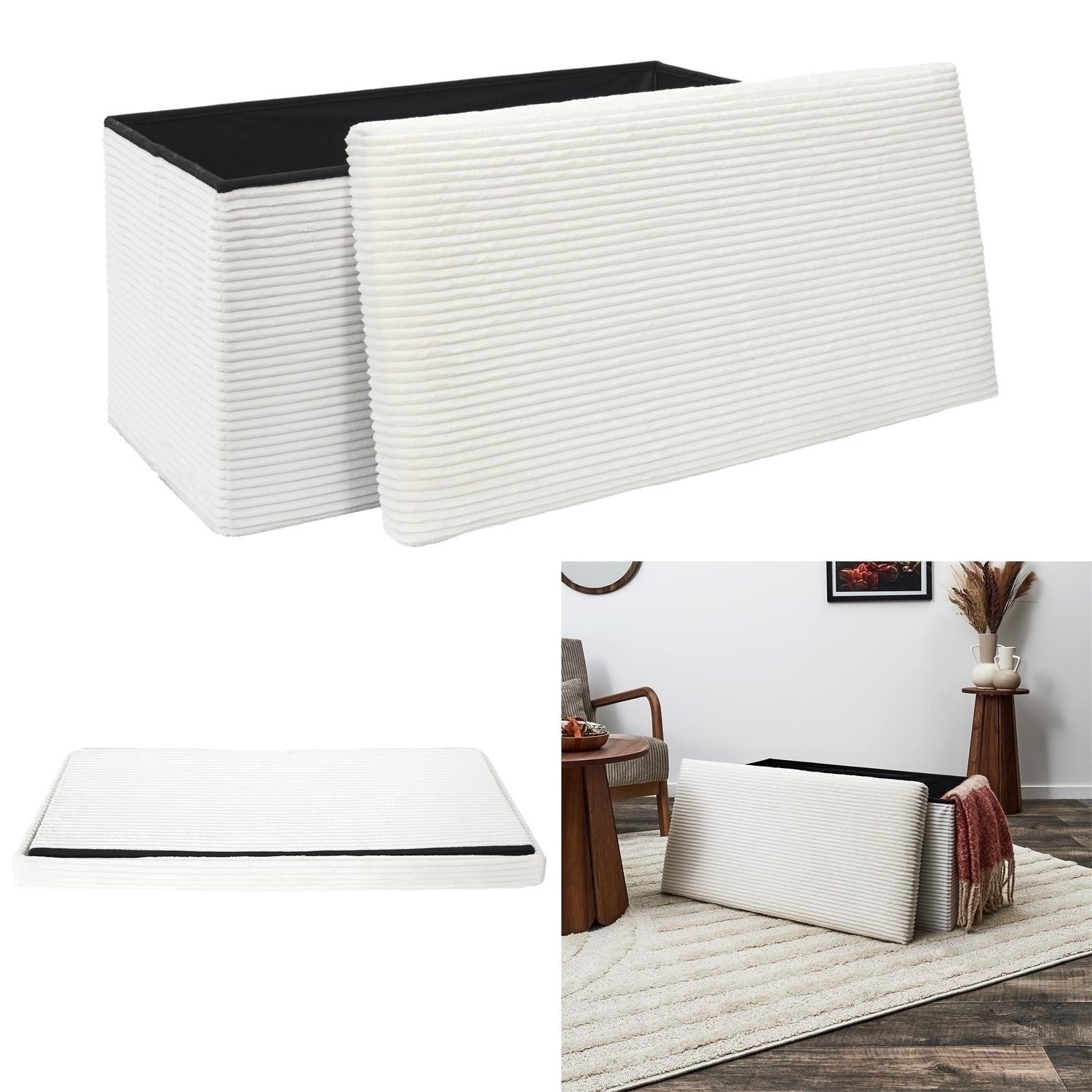 Skládací, manšestrový puf je kombinací minimalismu, modernosti a skandinávského stylu. Jeho barva dodává eleganci a použití plastu a polyesteru zaručuje odolnost a pohodlí při používání. Pufa má výšku 38 cm, což zajišťuje, že se ideálně hodí do různých stylů aranžmá. Puf z látky z hrubého manšestru je pohodlný nábytek do předsíně nebo ložnice.