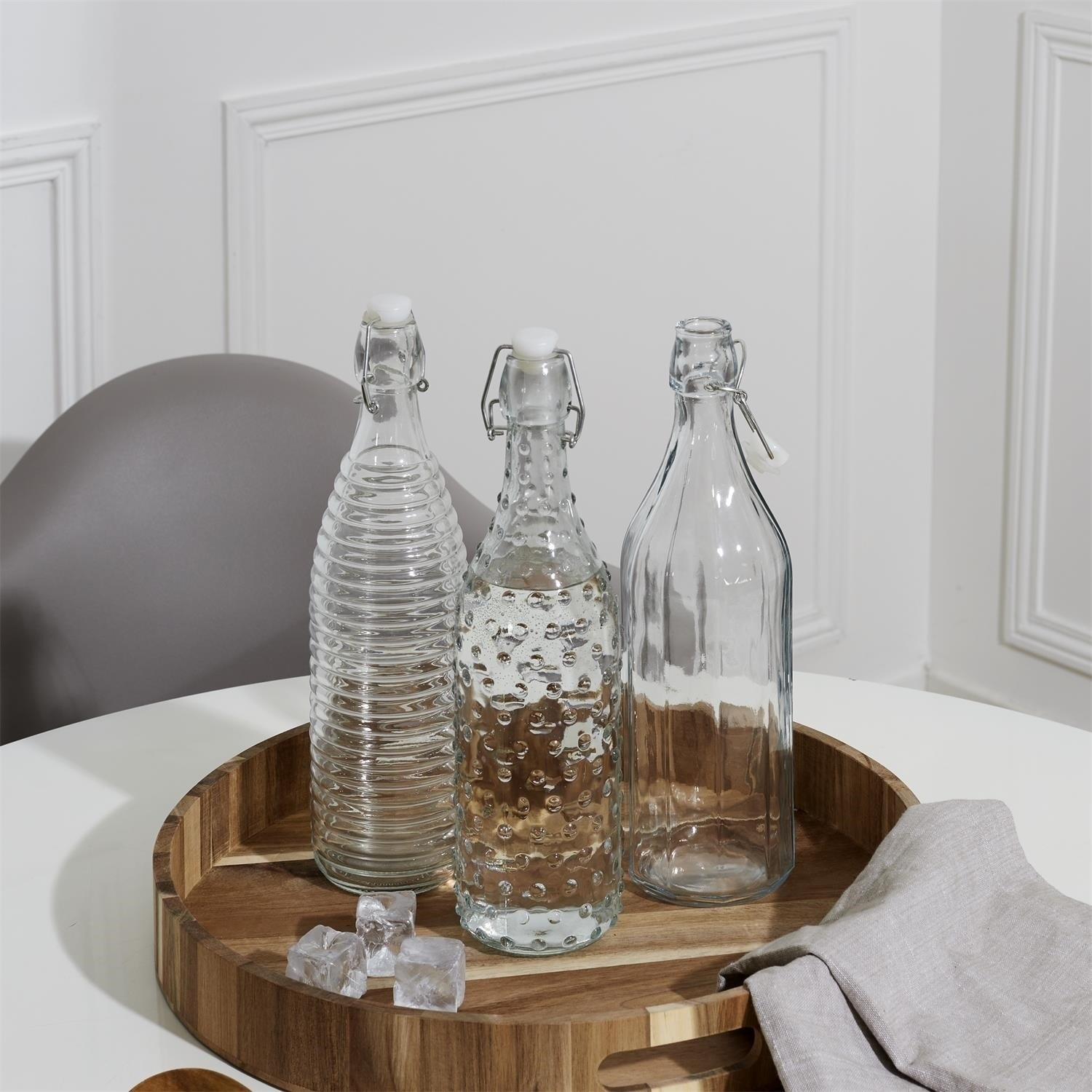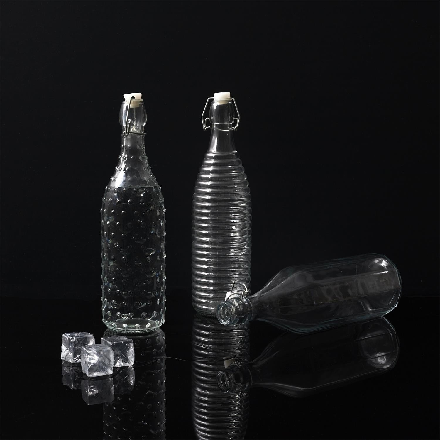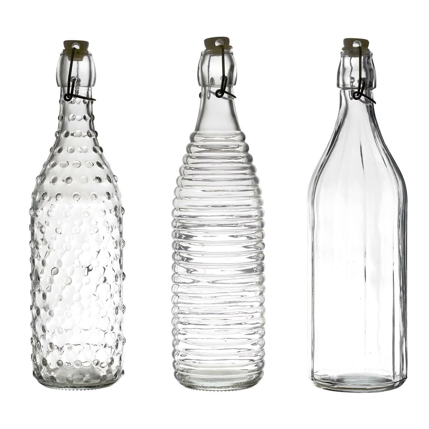 Skleněná, ozdobná láhev se hodí jako nádoba na džus, ocet nebo olivový olej. Láhev je k dispozici ve třech vzorech skla. Objem láhve 1 litr. Je uzavřena plastovým korkem a kovovou sponou. Lze mýt v myčce, Nelze používat v mikrovlnné troubě. Vhodné pro styk s potravinami.