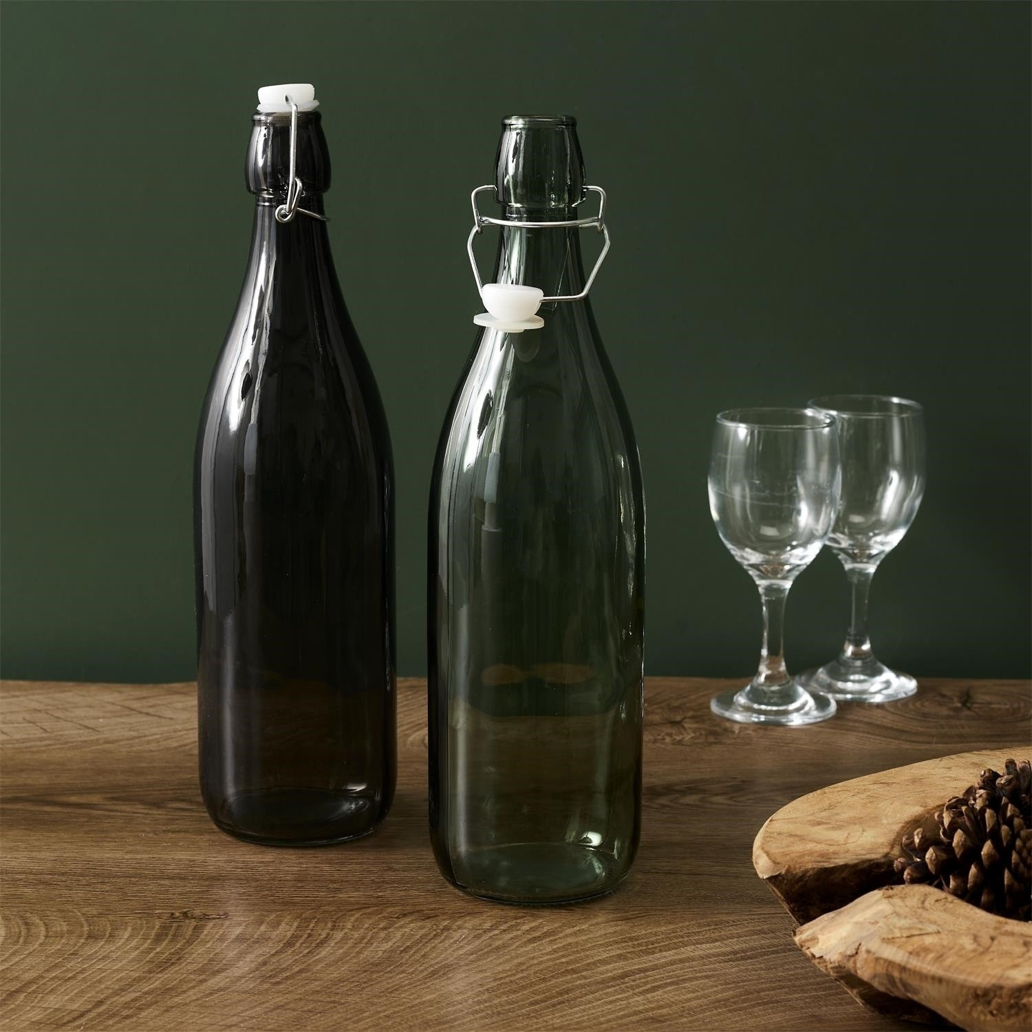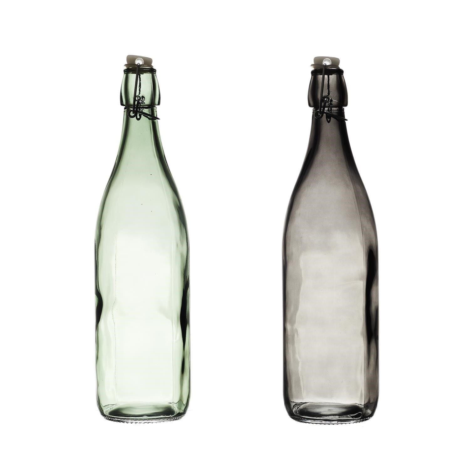 Skleněná, ozdobná láhev se hodí jako nádoba na džus, ocet nebo olivový olej. Láhev je k dispozici ve dvou barvách skla, které lze kombinovat, aby vytvořily zajímavé uspořádání kuchyňské police. Objem láhve 1 litr. Je uzavřena plastovým korkem a kovovou sponou. Lze mýt v myčce, Nelze používat v mikrovlnné troubě. Vhodné pro styk s potravinami.
