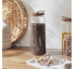 Elegantní skleněná nádoba s přírodní pokličkou z akáciového dřeva. Díky výšce 27,5 cm je sklenice prostorná a ideální pro skladování většího množství produktů, jako jsou koření, čaje nebo suché potraviny. Délka produktu (CM): 10 Výška produktu (CM): 27,5 Hloubka produktu (CM): 10 Průměr (CM): 10 Hmotnost produktu (GR): 470 Materiál: Borosilikátové sklo, akácie, silikon