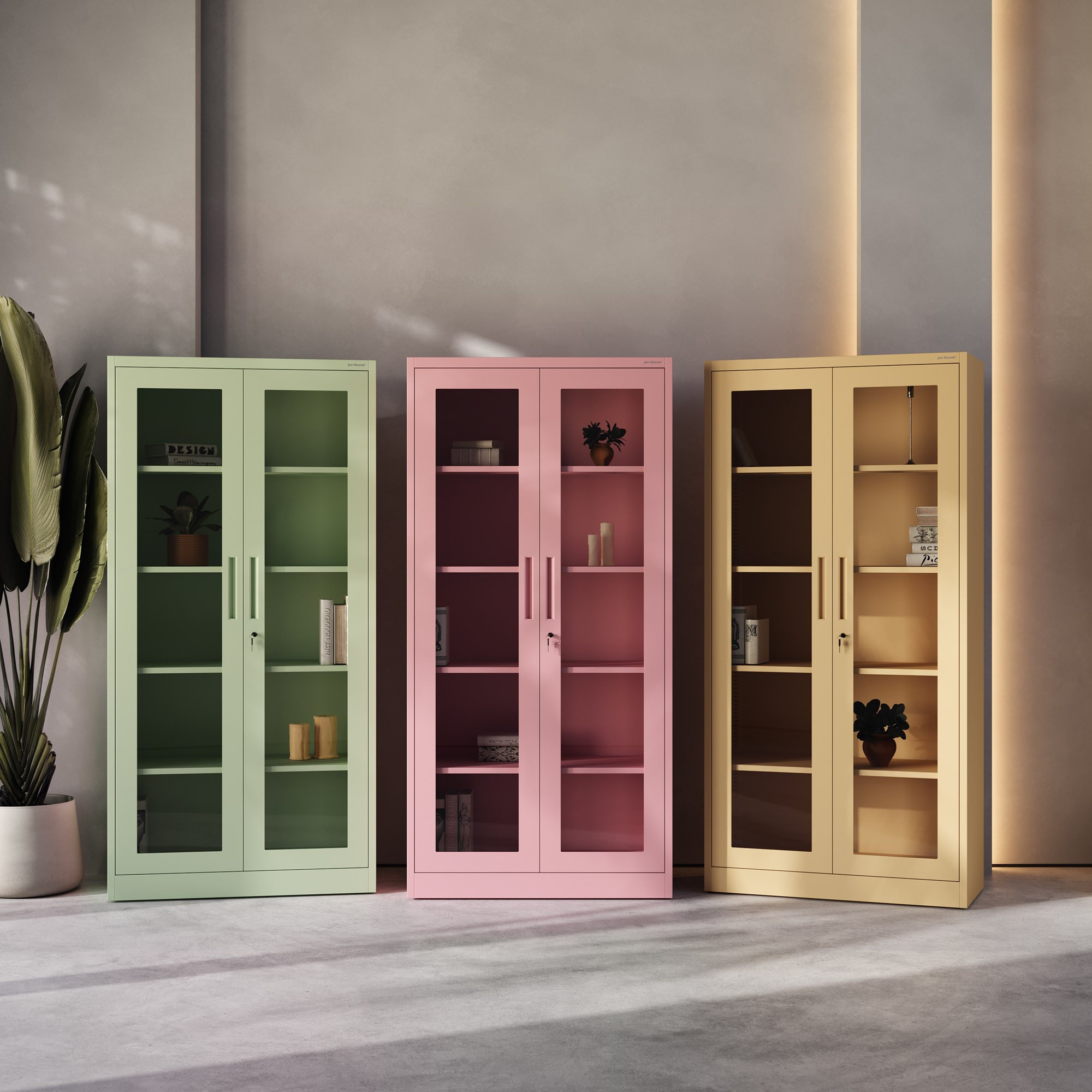 Vitrína AMELIA je součástí kolekce Fresh Style, která přináší nový pohled na kovový nábytek. Už žádná nudná šedá! S vitrínou AMELIA v jemném béžovém provedení vnesete do svého prostoru svěžest a eleganci. Její prosklené dveře umožňují dokonalý pohled na vystavené předměty, zatímco decentní barva rámu dodává celku sofistikovaný vzhled.