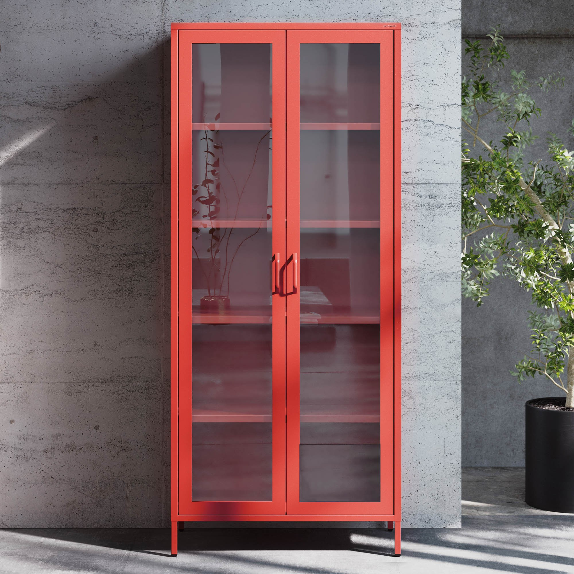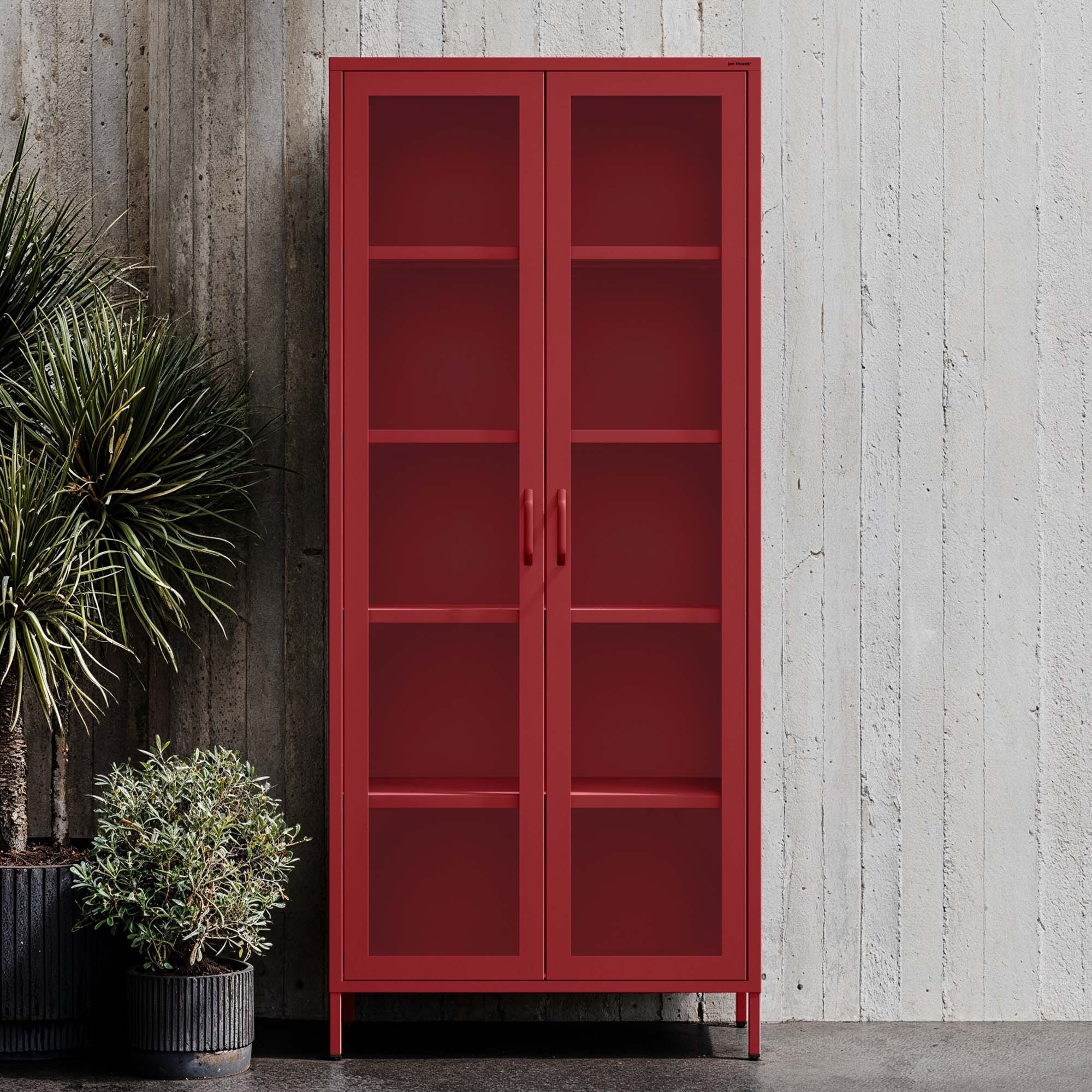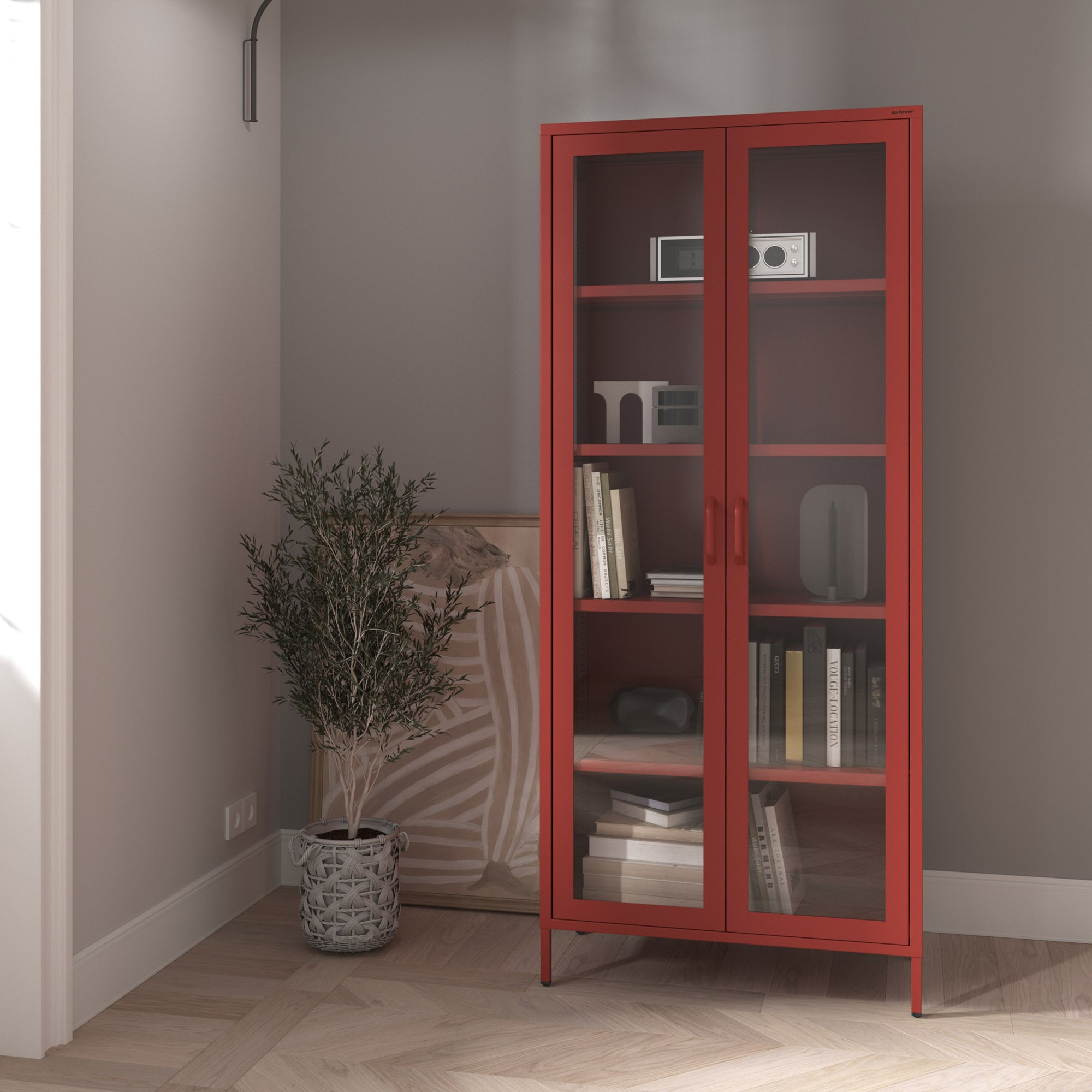 Skleněná vitrína do obývacího pokoje červená Modern ANGELO 800 x 1850 x 450 mm