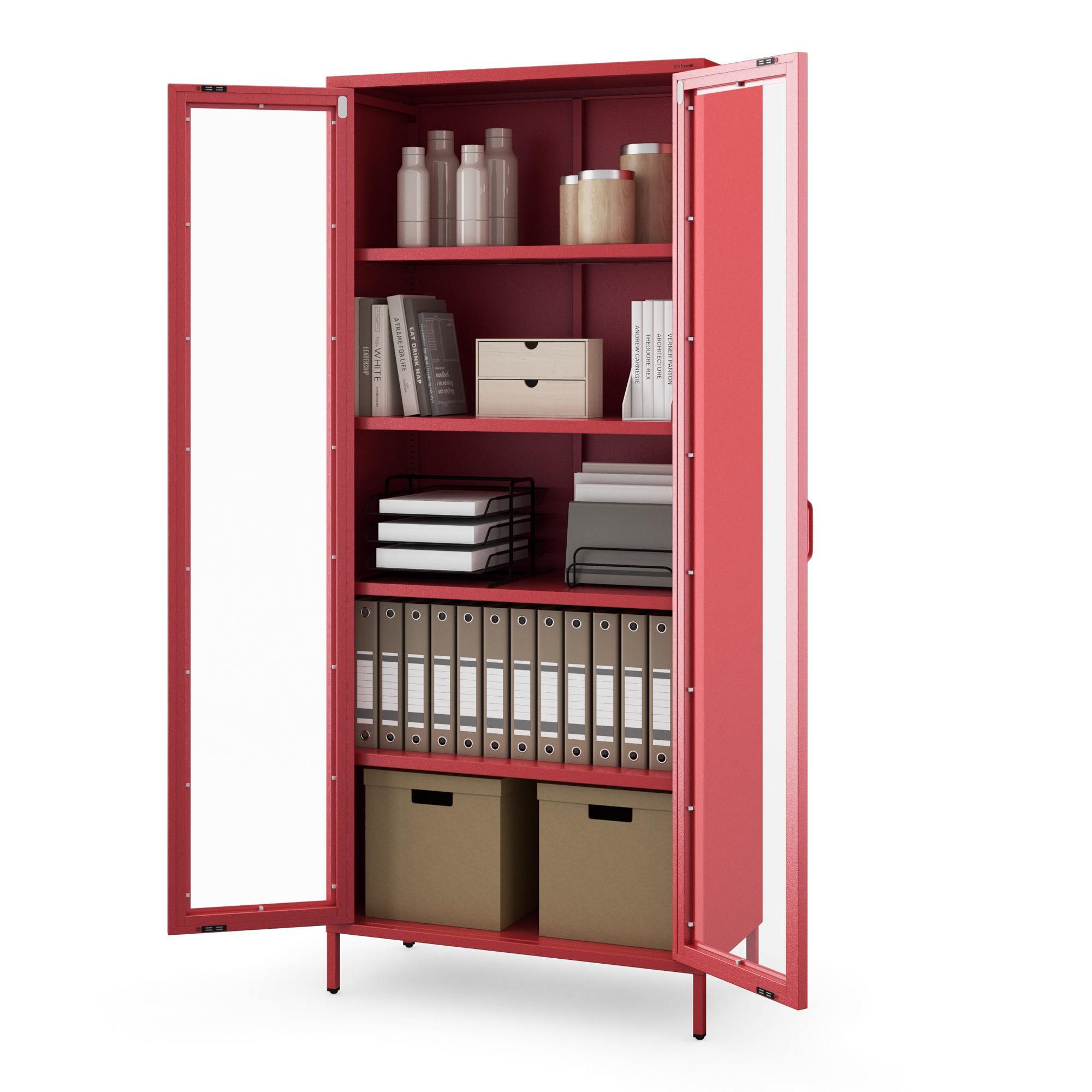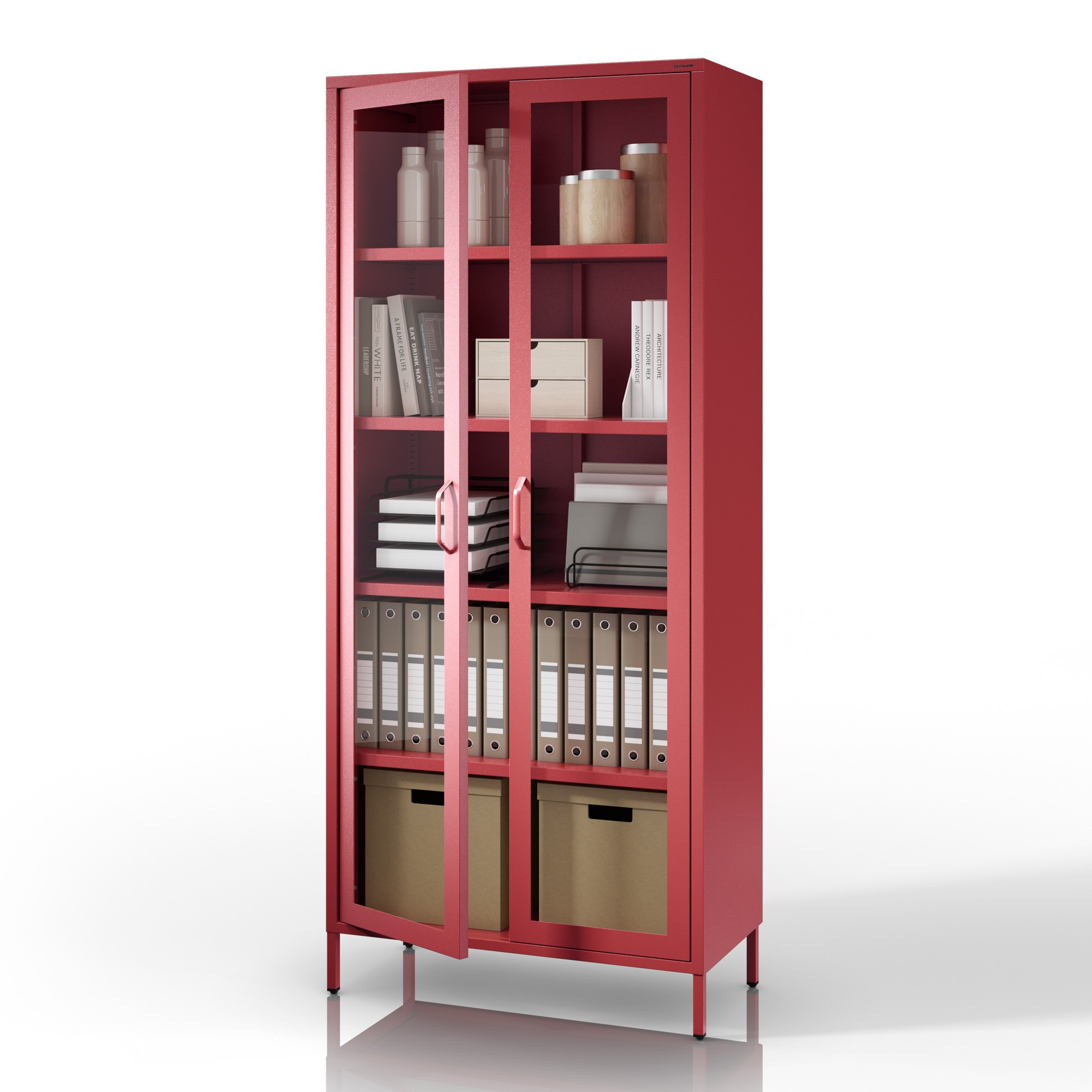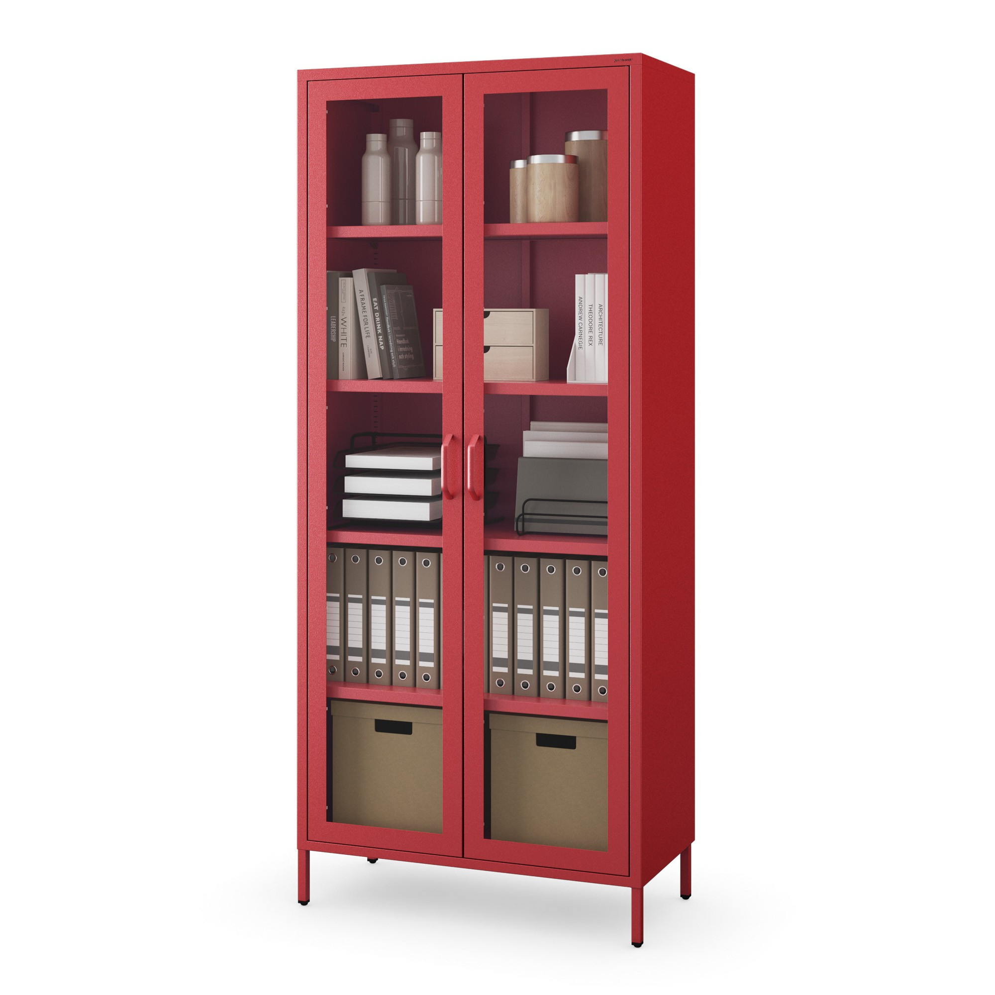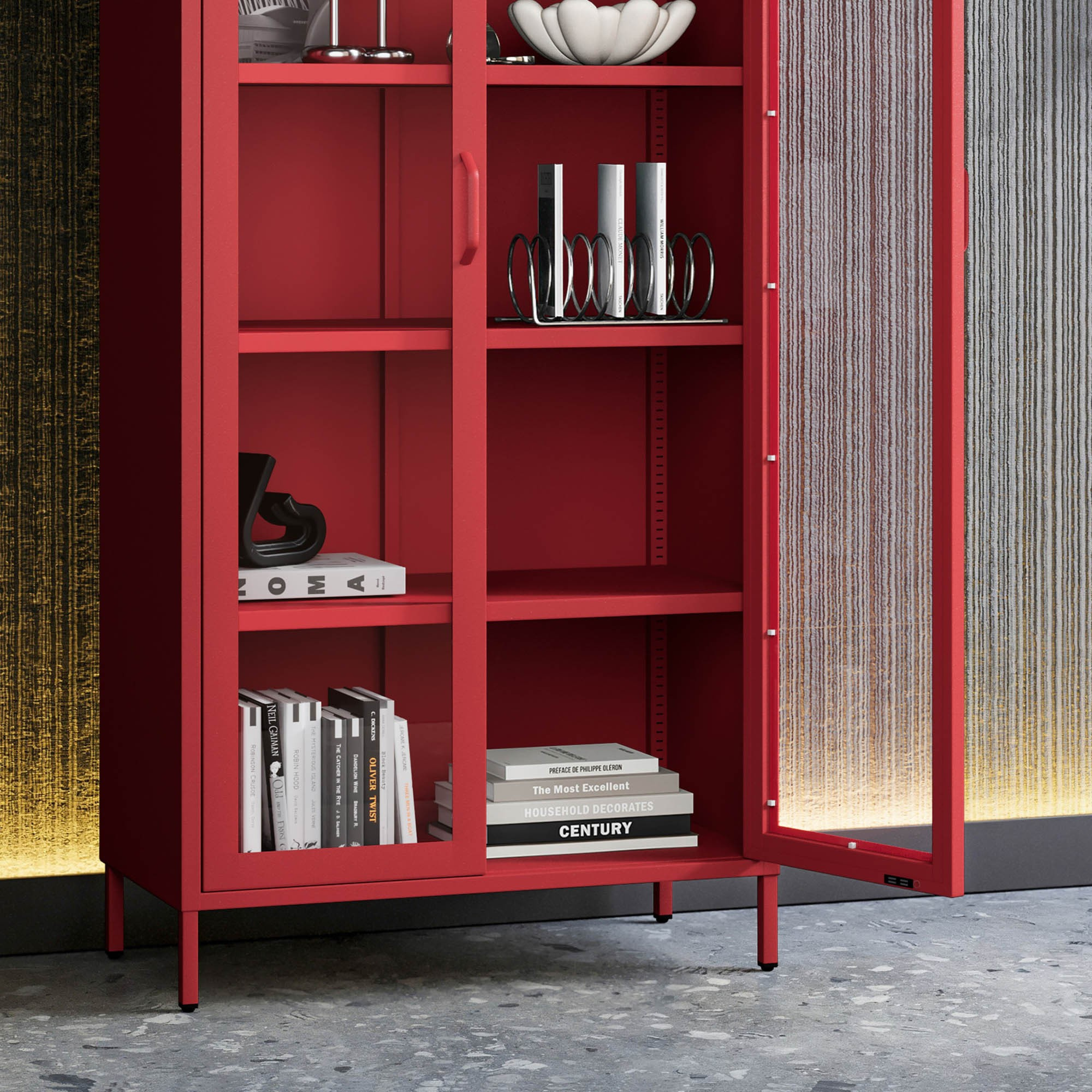 Skleněná vitrína do obývacího pokoje červená Modern ANGELO 800 x 1850 x 450 mm