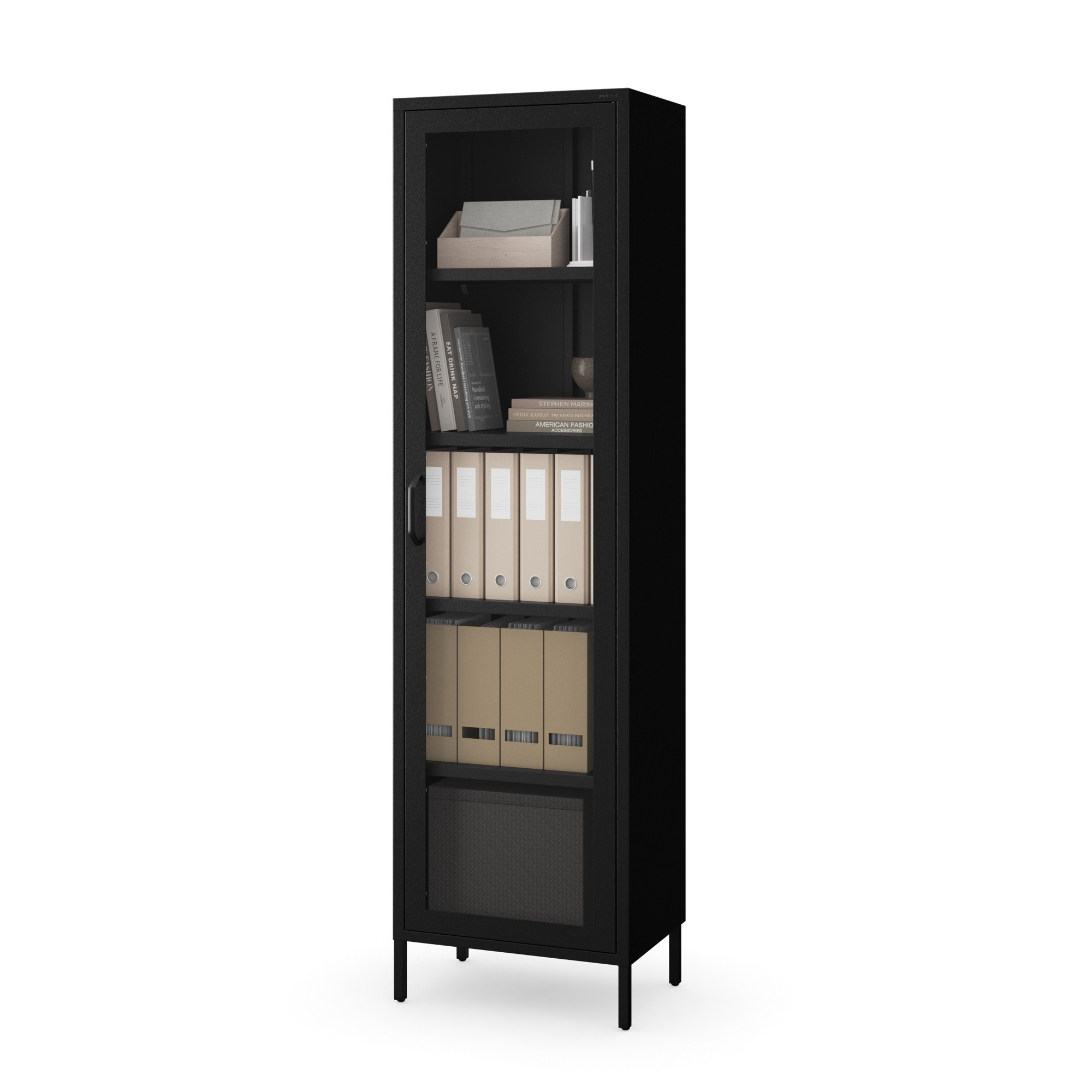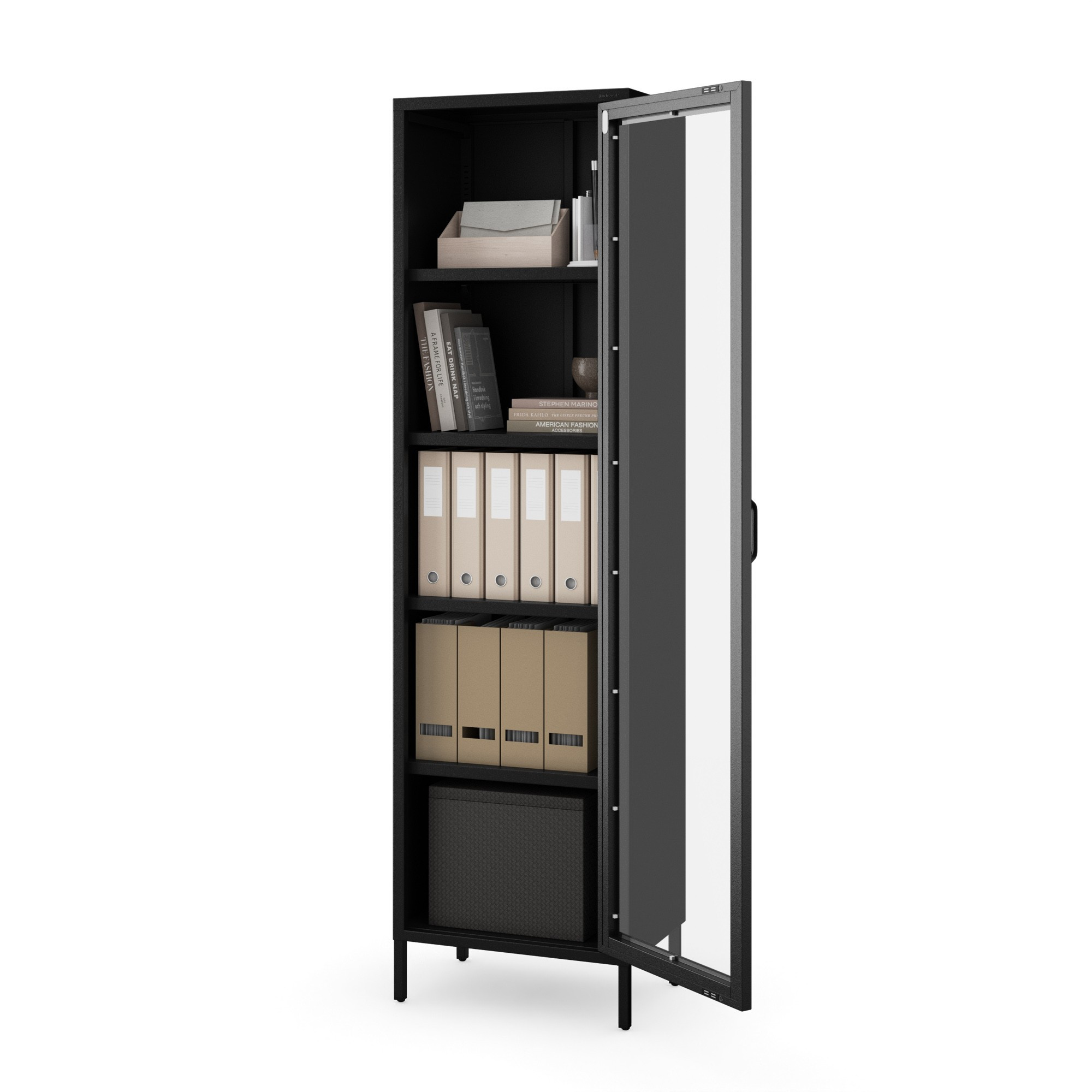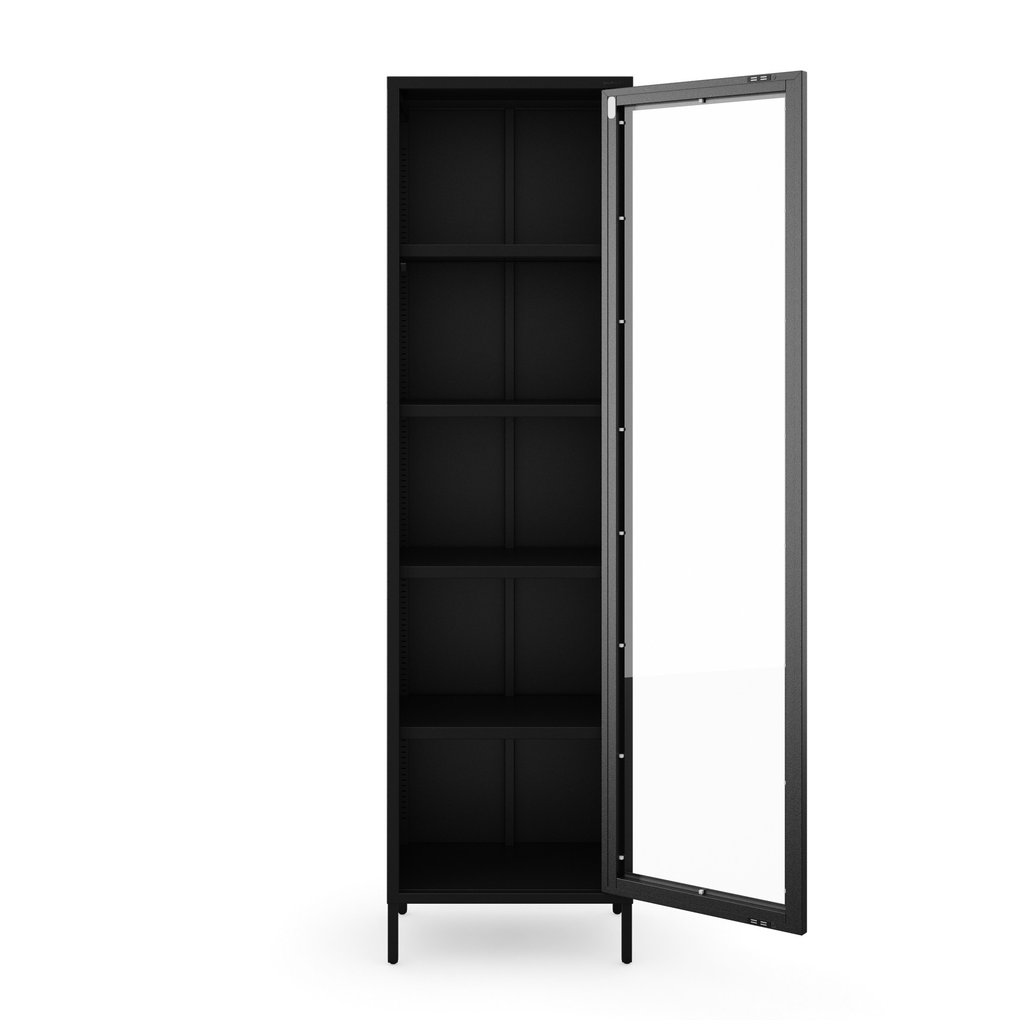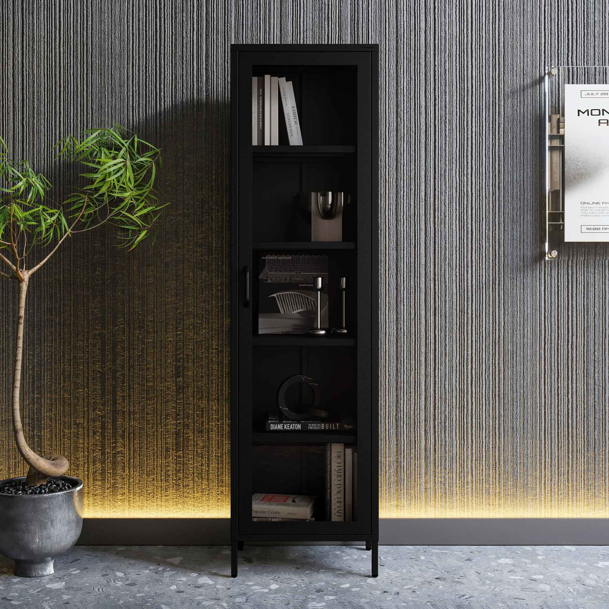 Skleněná vitrína do obývacího pokoje úzká kovová černá LUIGI Modern 500 x 1800 x 350 mm