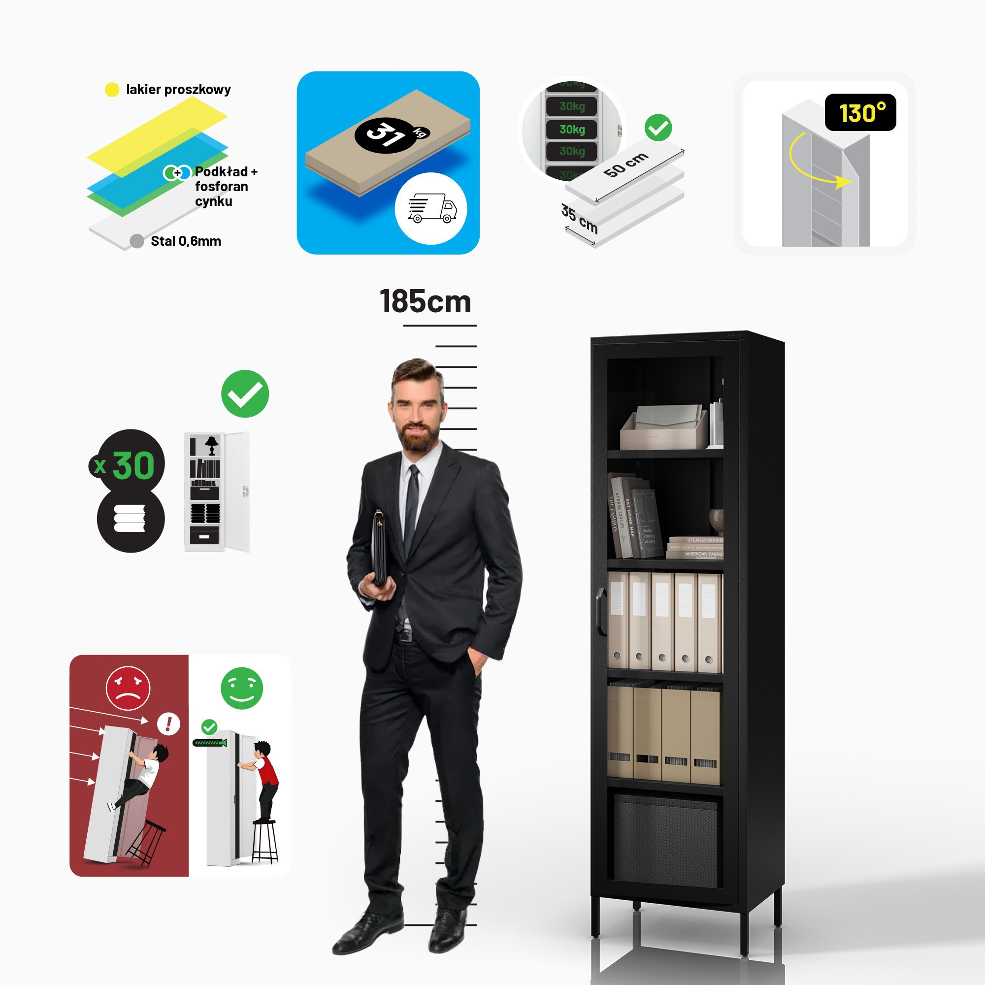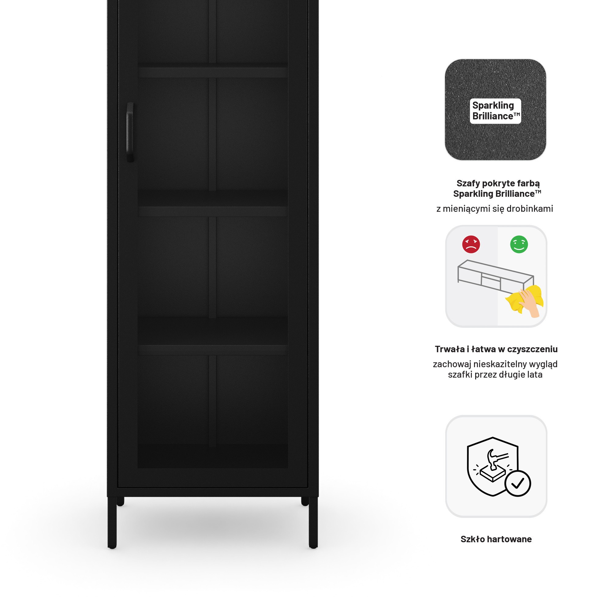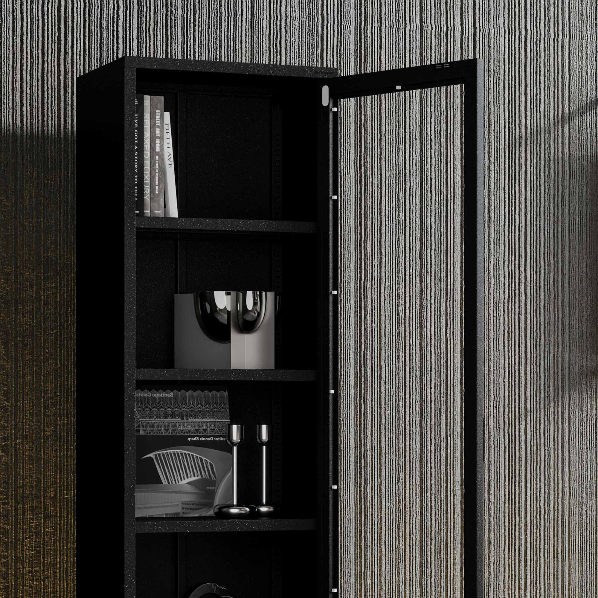 Skleněná vitrína do obývacího pokoje úzká kovová černá LUIGI Modern 500 x 1800 x 350 mm