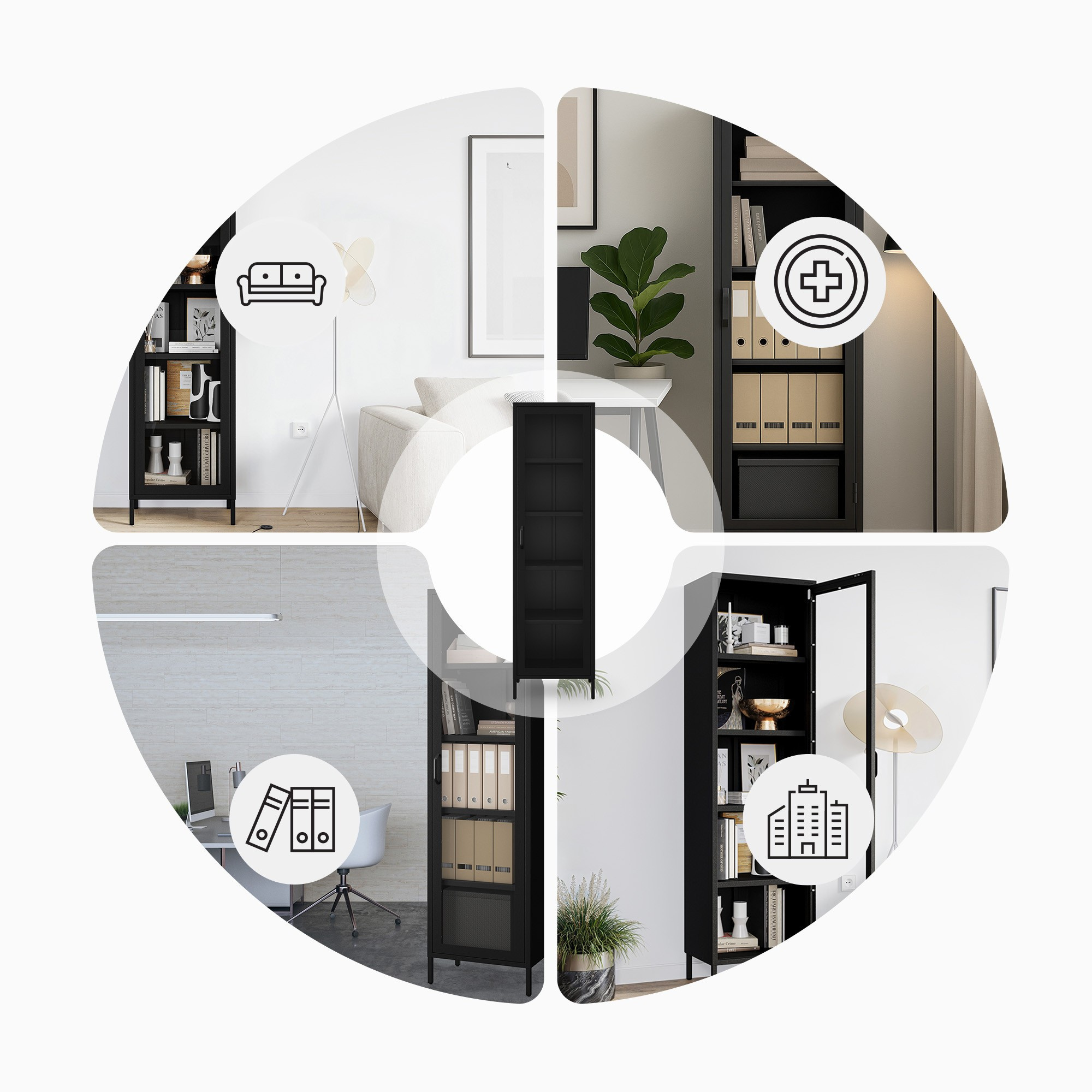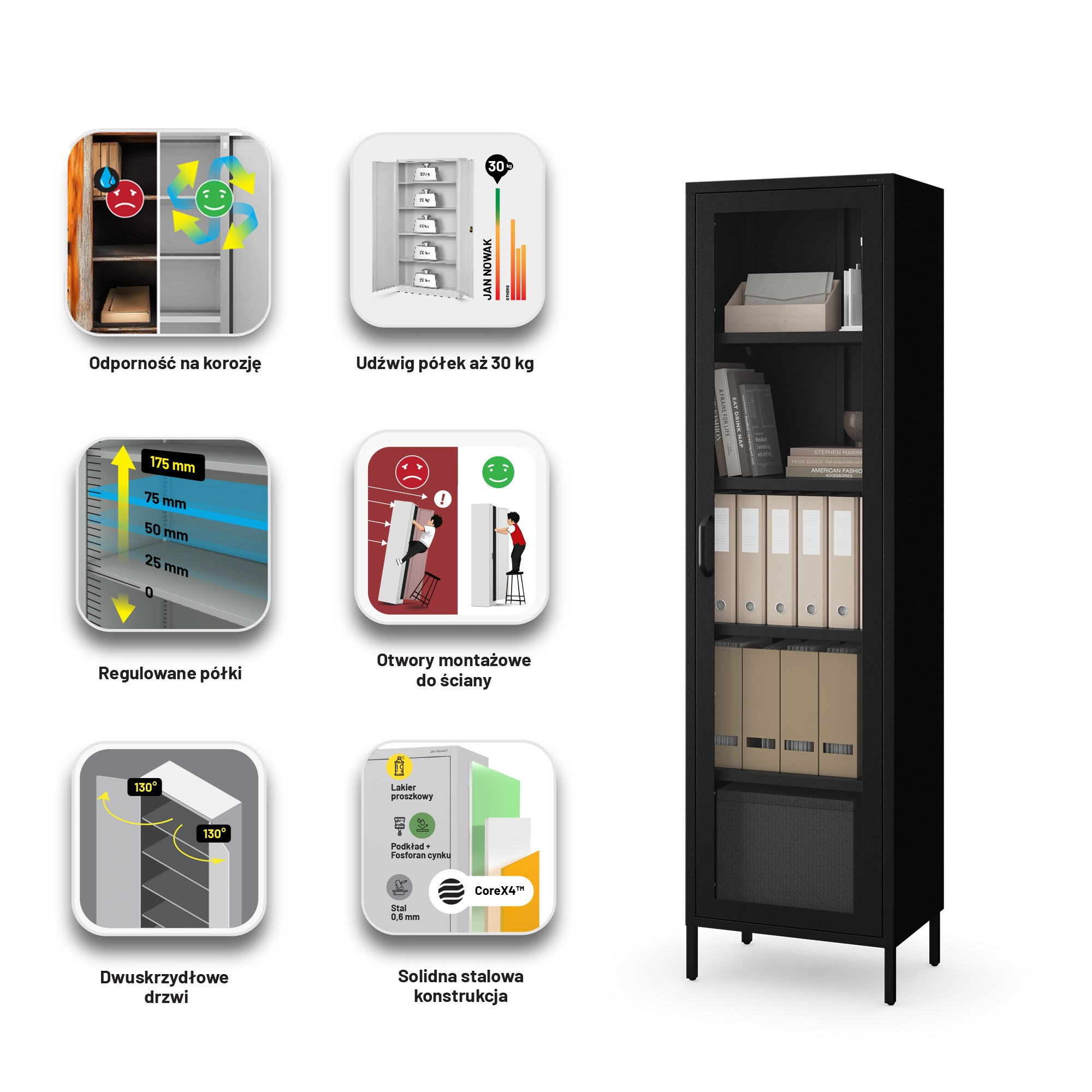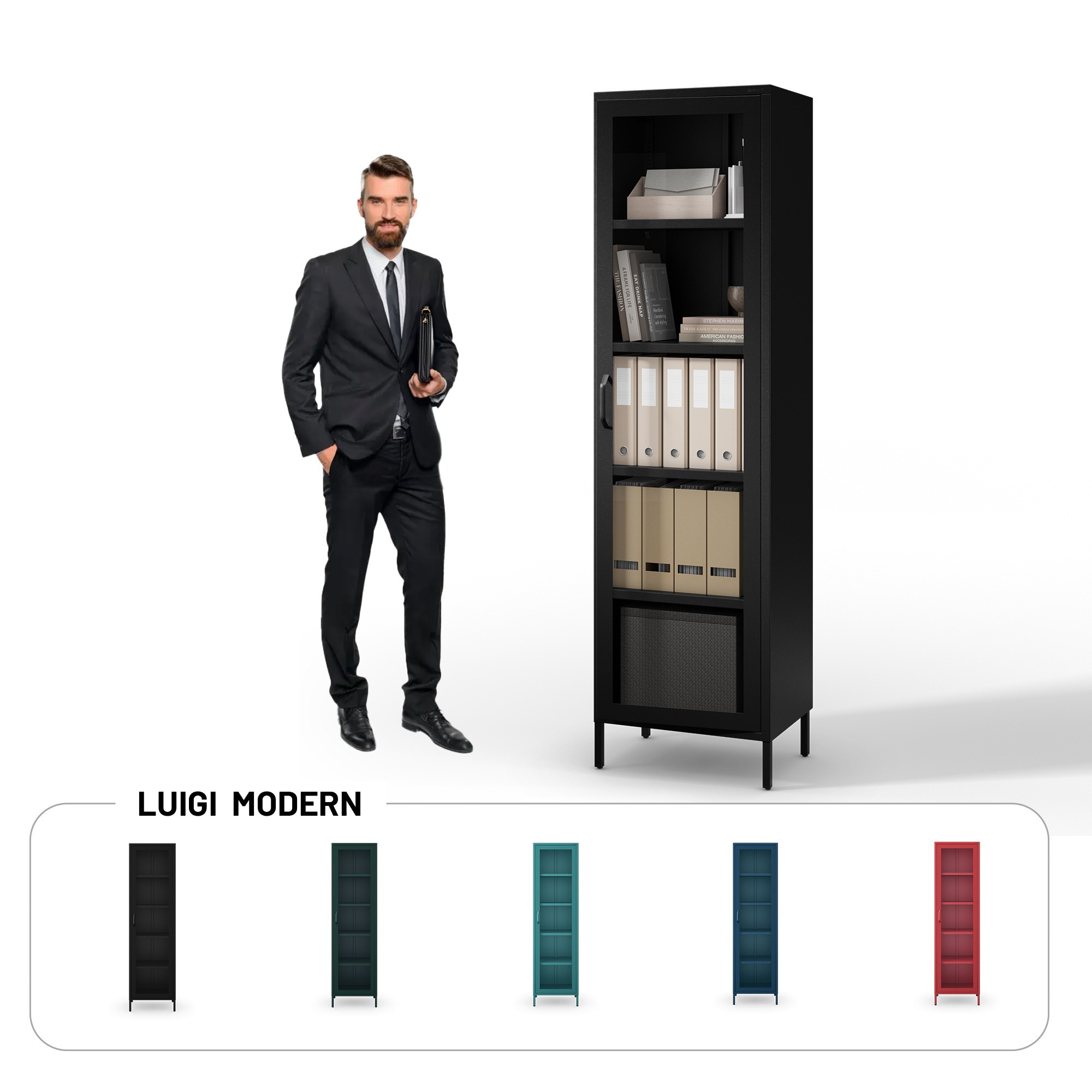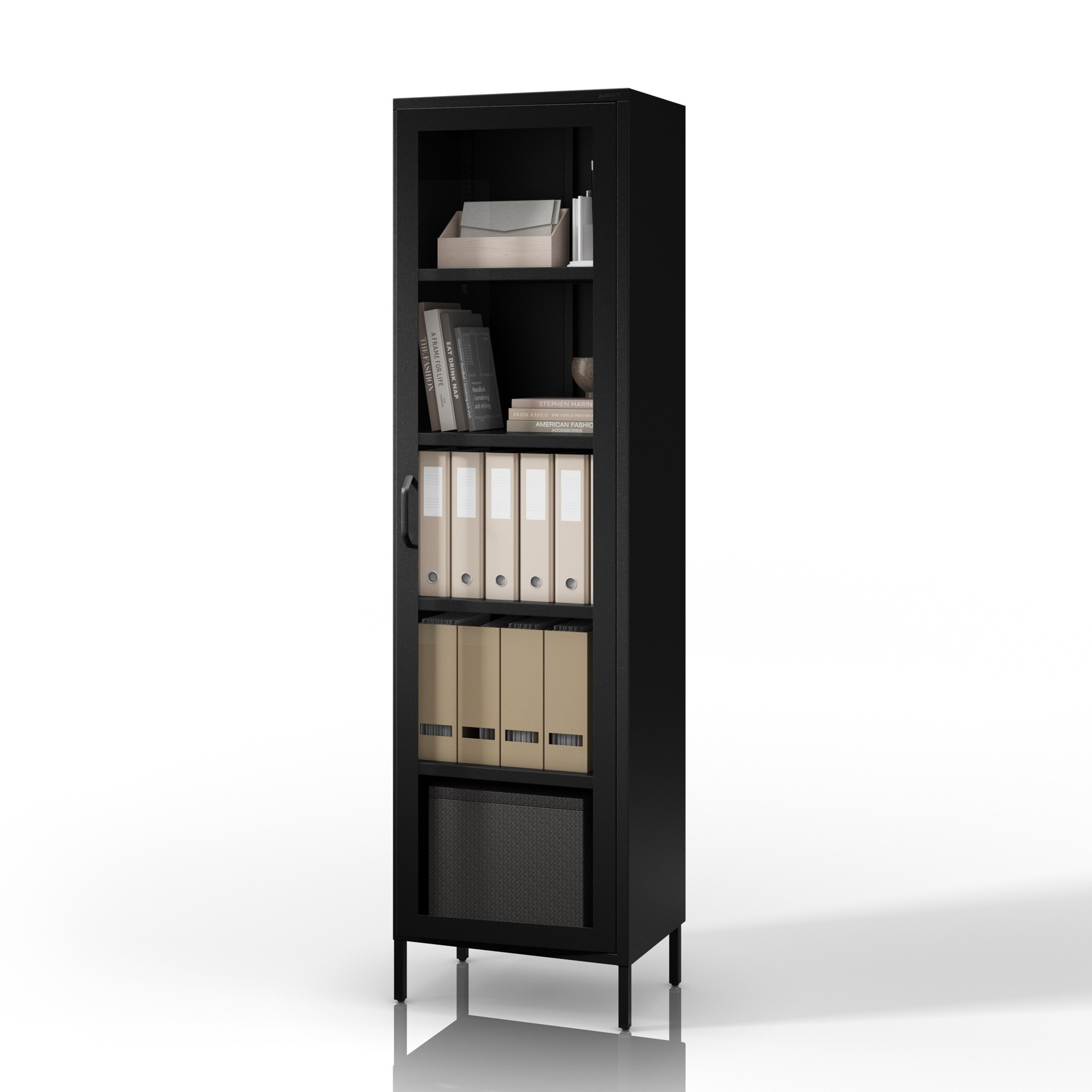 Skleněná vitrína do obývacího pokoje úzká kovová černá LUIGI Modern 500 x 1800 x 350 mm