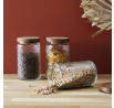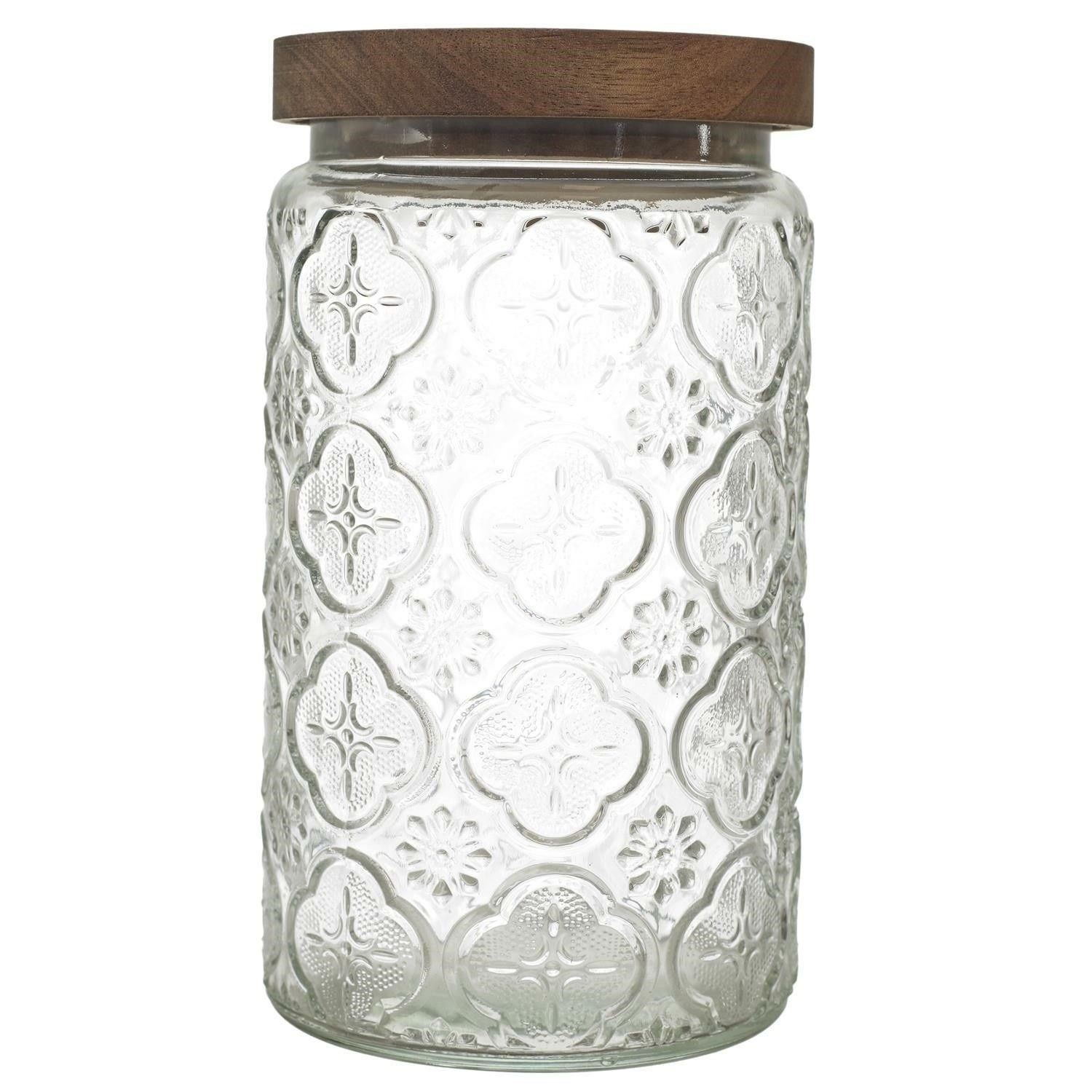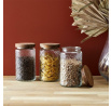 Stylová sklenice Cisele o objemu 1 litr, vybavená elegantním víkem z akácie. Vyrobený z vysoce kvalitního skla, ideálně se hodí k uchovávání koření, čajů, kávy nebo drobných pochutin. Průhledná konstrukce umožňuje snadné sledování obsahu, zatímco přírodní víko zajišťuje těsnost a delší čerstvost uložených produktů. Díky jednoduchému, ale elegantnímu designu se sklenice skvěle hodí do každé kuchyně, přidávajíc jí nádech elegance a funkčnosti. Délka produktu: 9,8 cm Výška produktu: 17,8 cm Hloubka produktu: 9,8 cm Průměr: 9,8 cm Hmotnost produktu: 570 g Materiál: Sklo, akácie, silikon