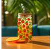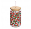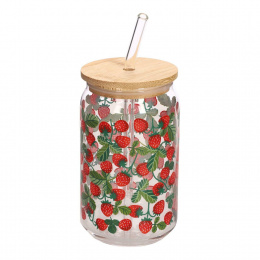Sklenice s víčkem a brčkem Soleo 530ml jahody