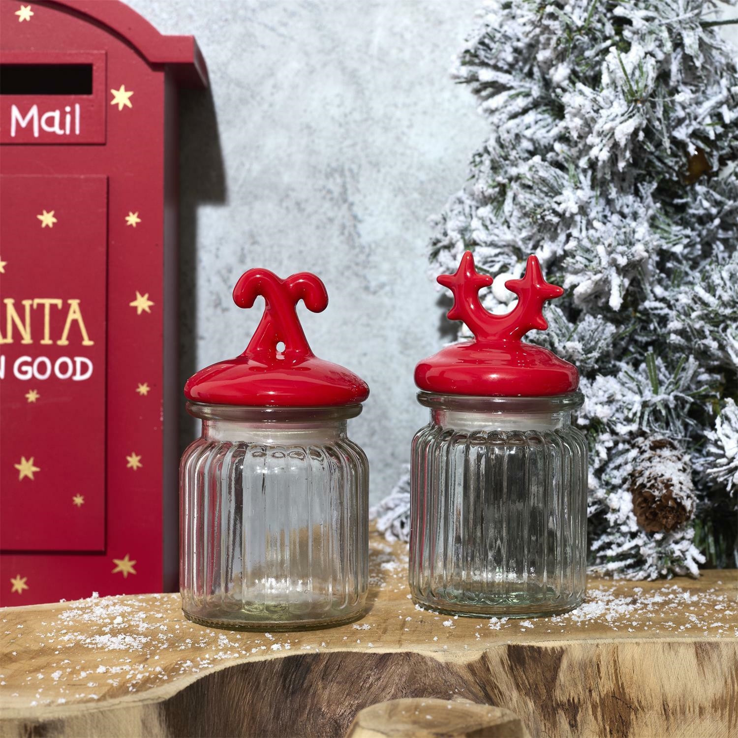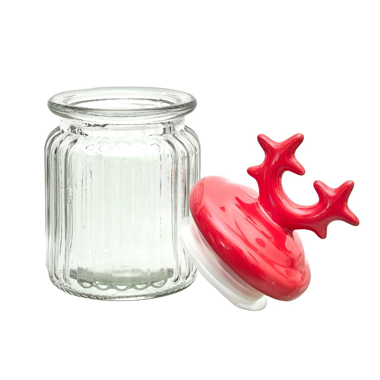 Skleněná nádoba s víkem ve tvaru sobích rohů je ideálním doplňkem zdobícím náš domov během Vánoc. Sklenice se osvědčí při skladování cukru, kávy nebo ořechů. Sklenice vyrobená ze skla, zatímco víčko je vyrobeno z keramiky. Sklenice je vybavena silikonovým těsněním. Objem 125 ml