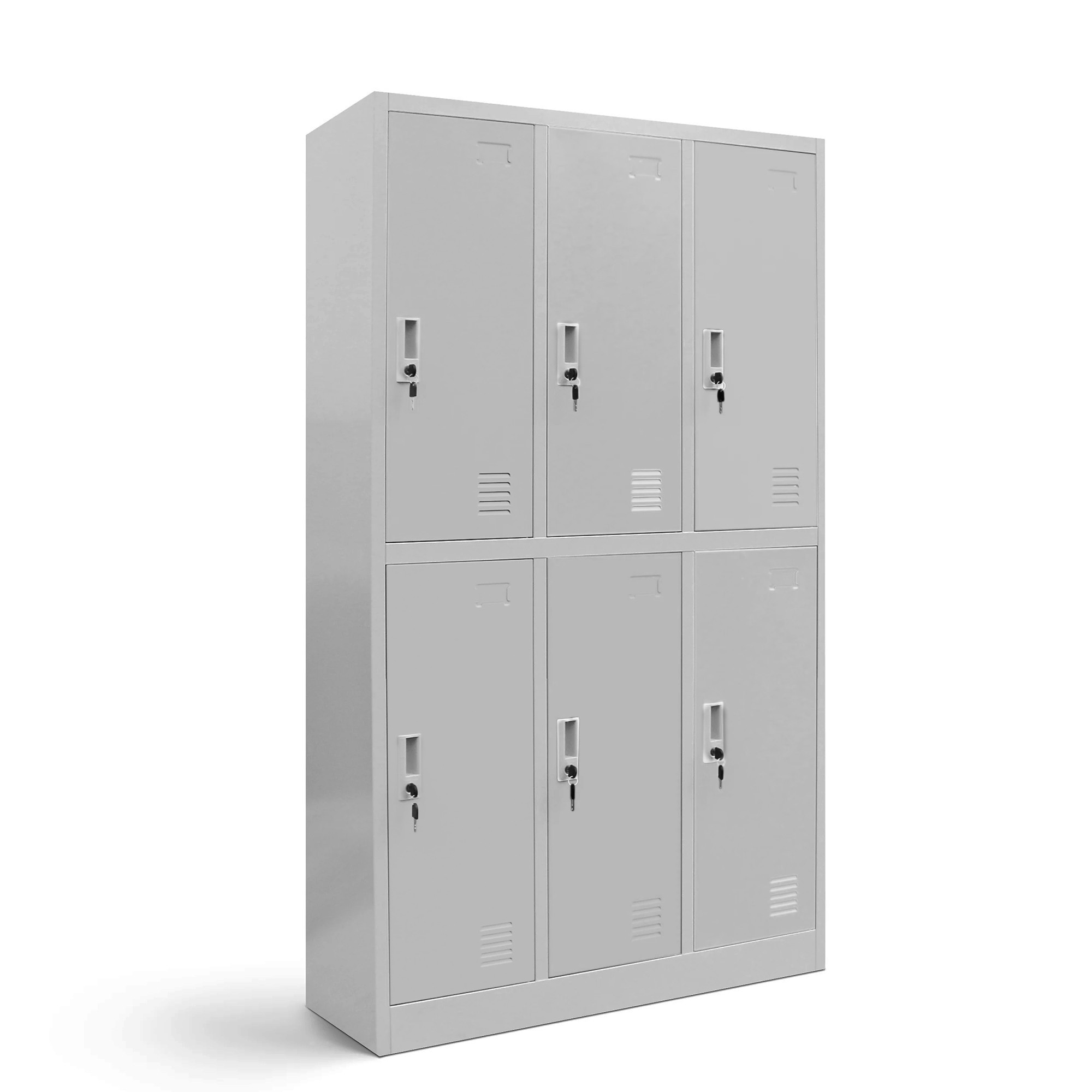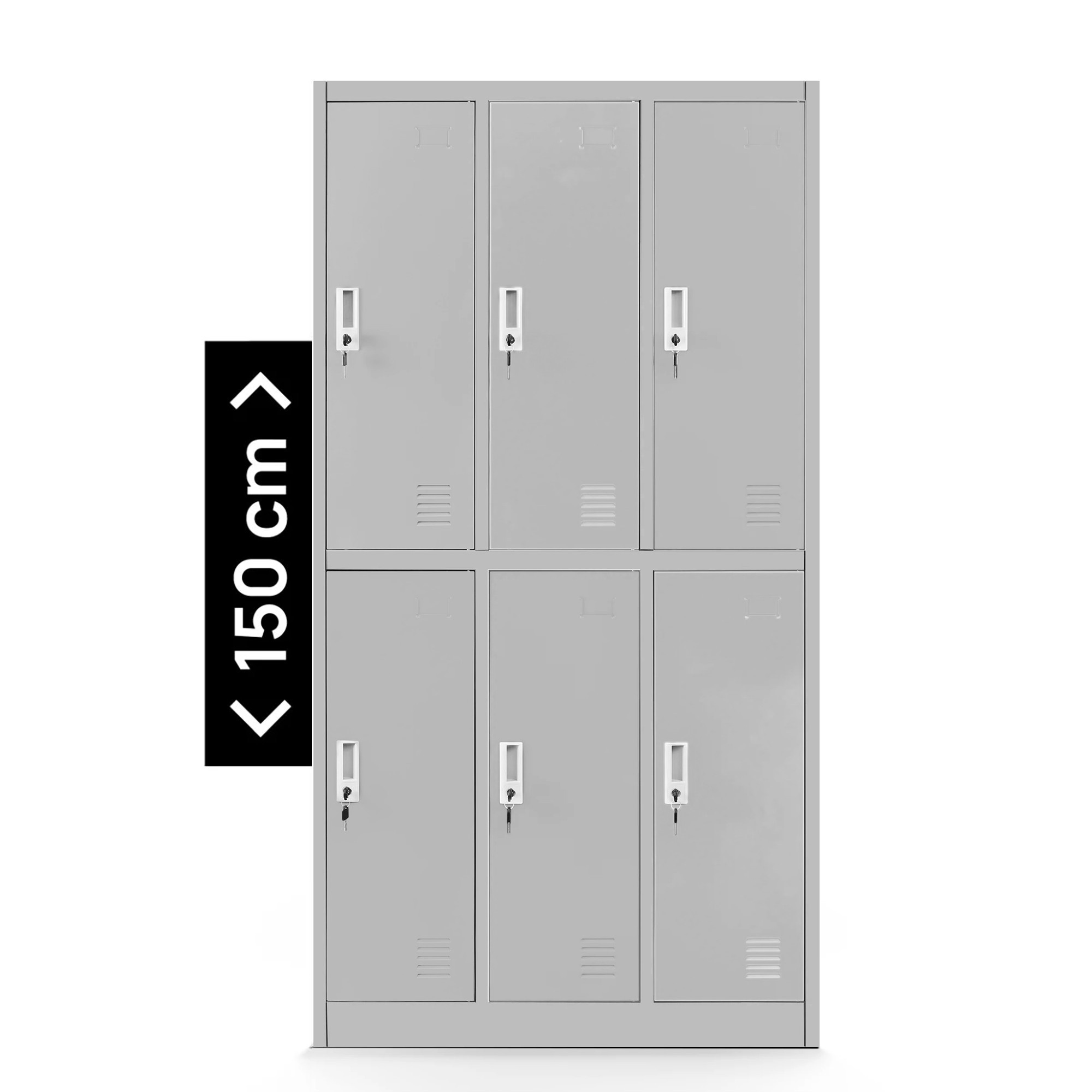 Školní skříňka BHP šedá: 6-komorová IGOREK, 900 x 1500 x 450 mm