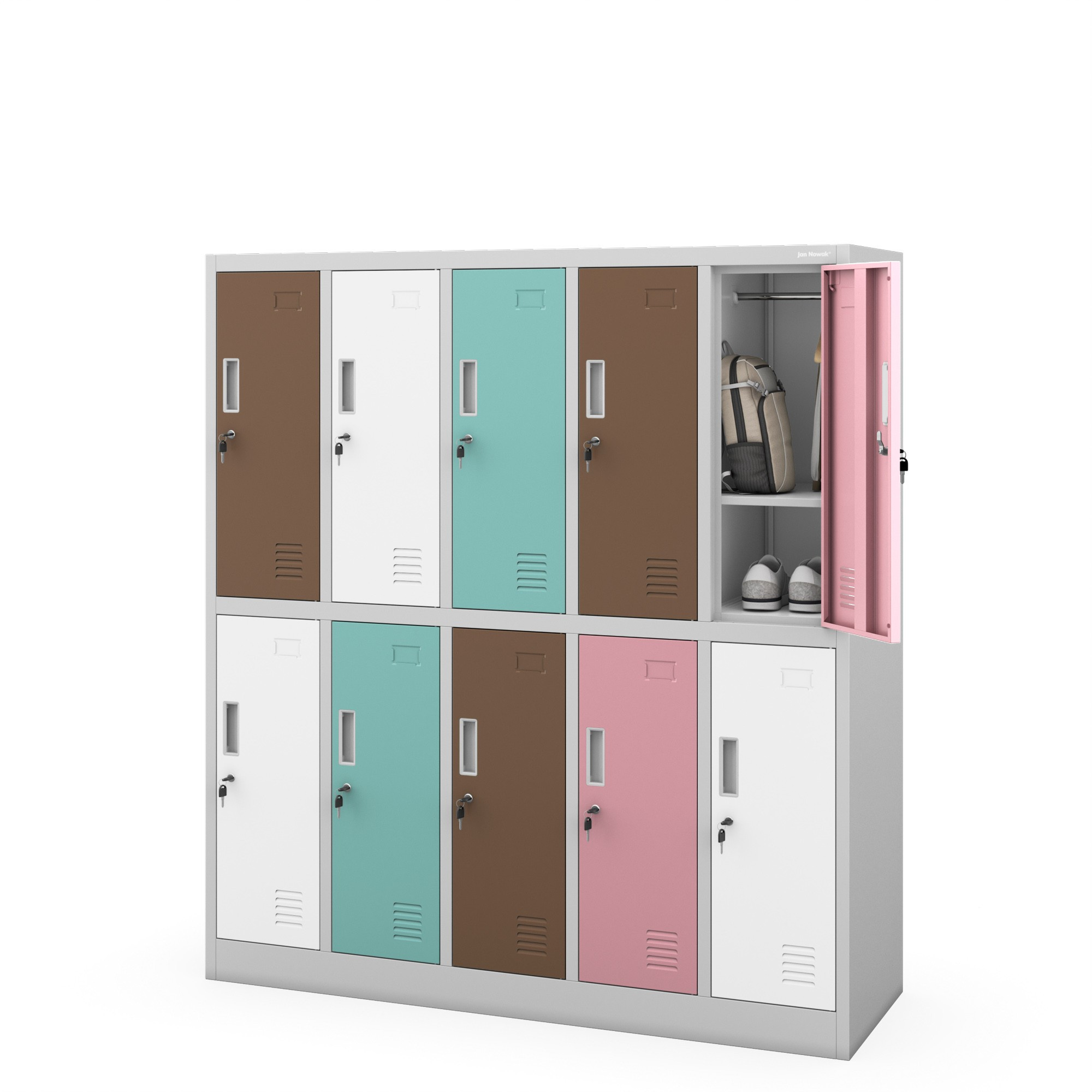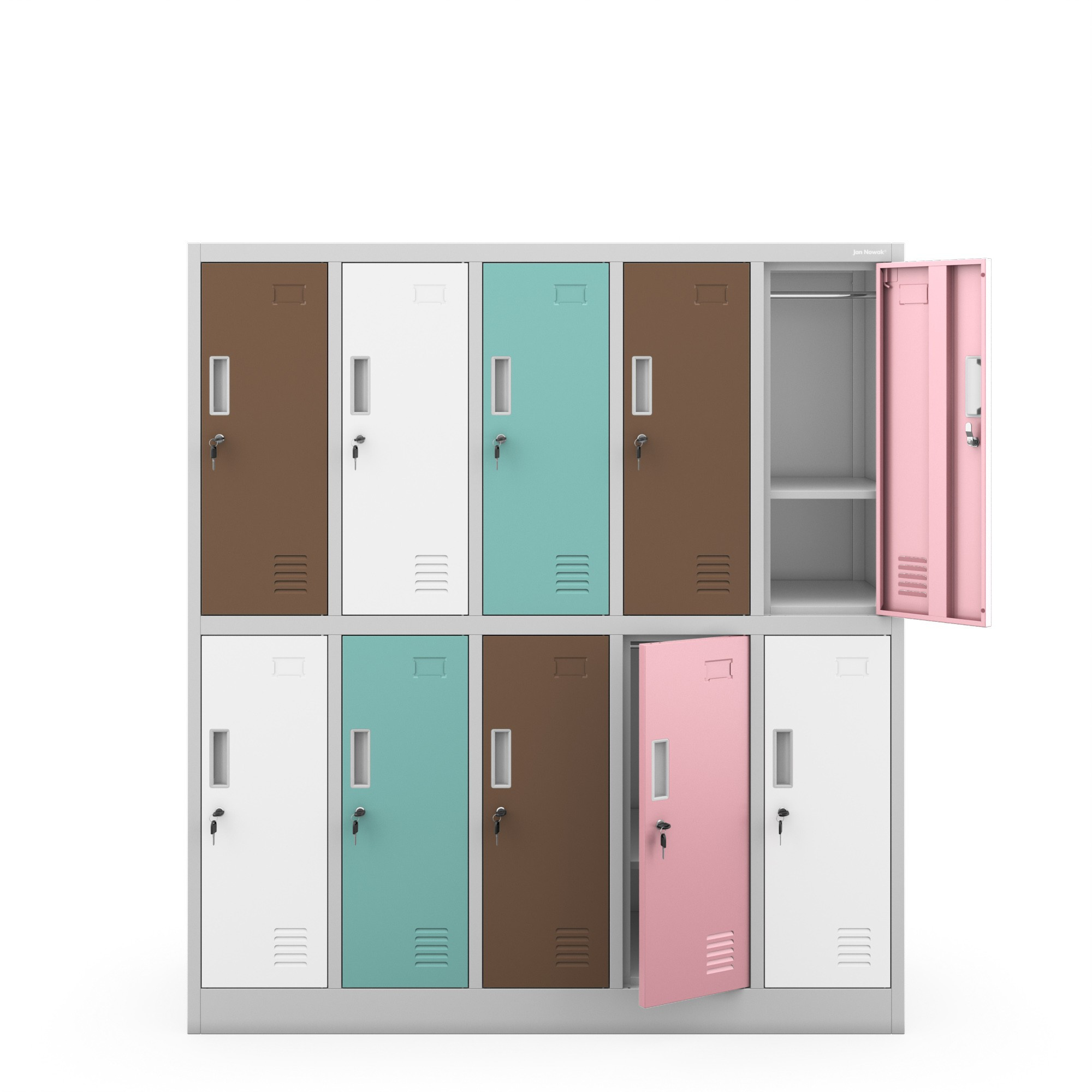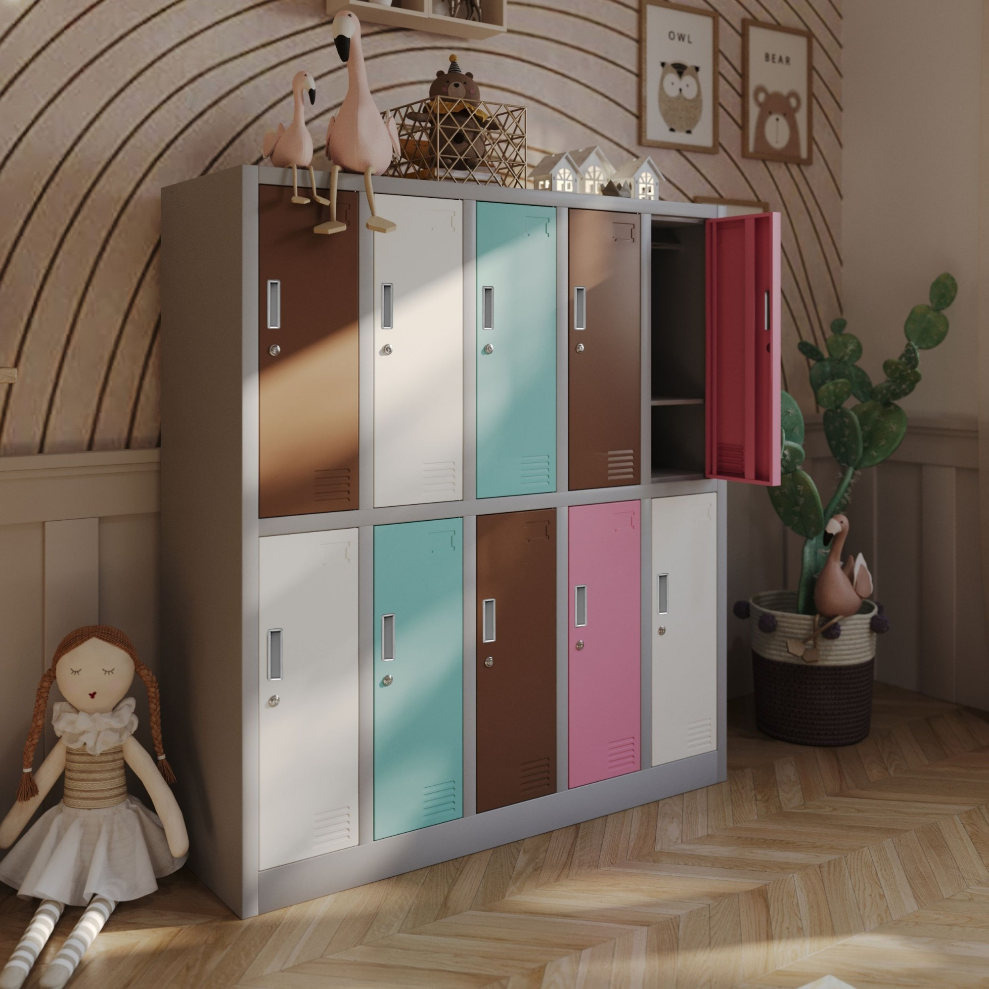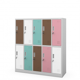 Školní skříňka BHP šedo-pastelová: 10-komorová , 1360 x 1500 x 450 mm