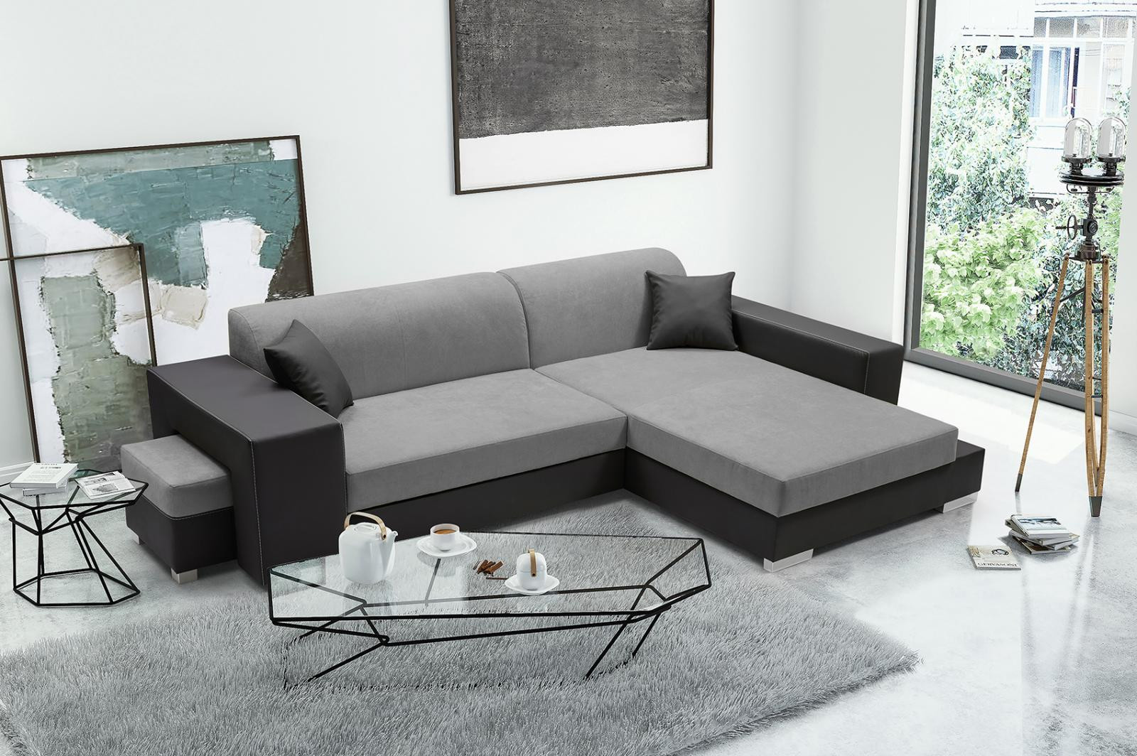 Sedací souprava Oskar je vyrobena v jednoduchém nadčasovém designu, který se hodí do každého interiéru. Sedací souprava je rozkládací a má praktický úložný prostor. Pohodlí při sezení zajišťují pružiny faliste s kvalitní PUR pěnou. Jednoduchým rozkladem vznikne lůžko vhodné k příležitostnému spaní. Sedací soupravu nabízíme v levém i pravém provedení v několika barevných provedeních. Sedací souprava je potažena kvalitní látkou v kombinaci s EKO kůží a je celočalouněná, takže ji můžete umístit i do prostoru. V ceně sedací soupravy je taburet, který můžete uschovat v područi a 2 malé polštářky. Ostatní vyobrazené doplňky a dekorace nejsou v ceně. Zobrazení barev na fotografii se může od skutečnosti lišit.