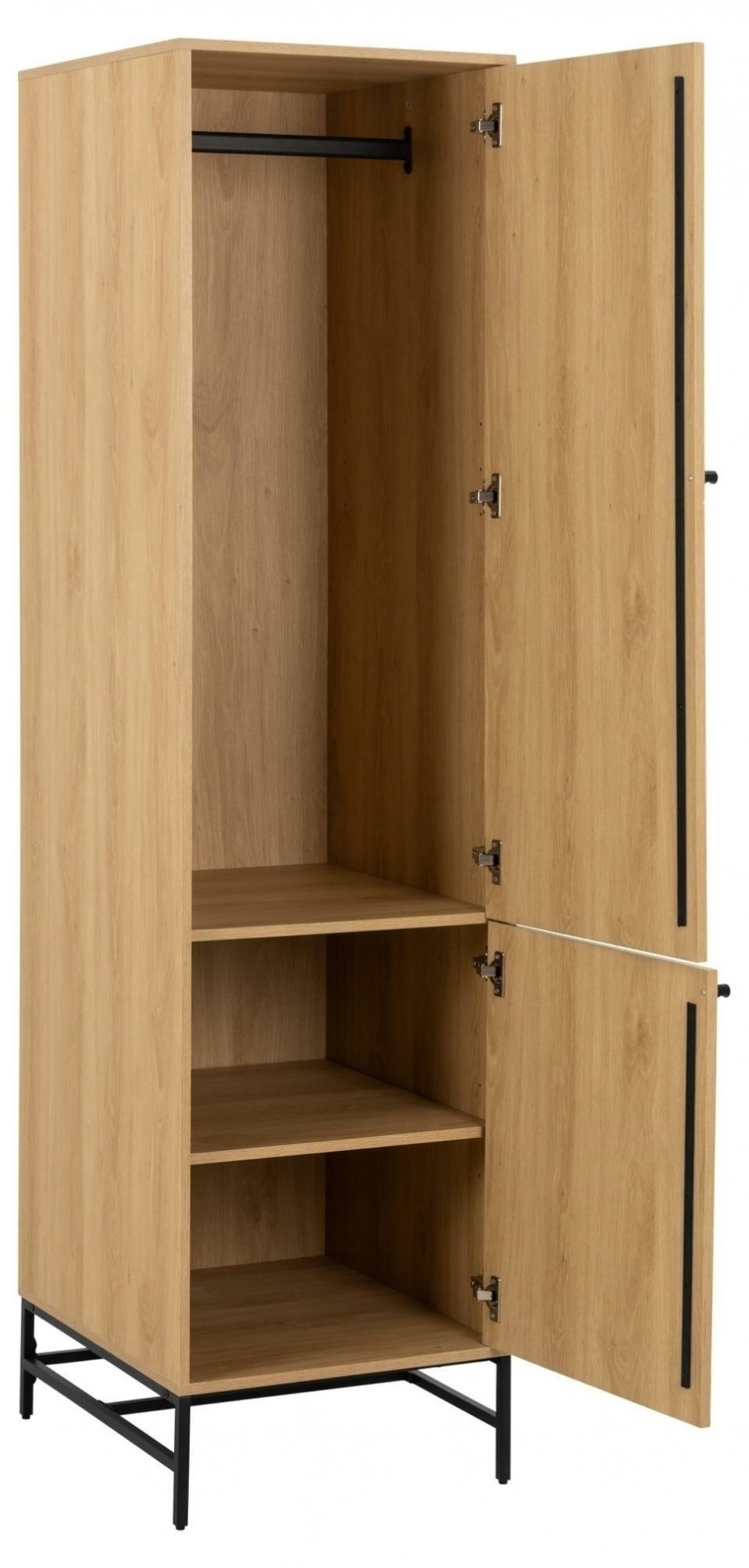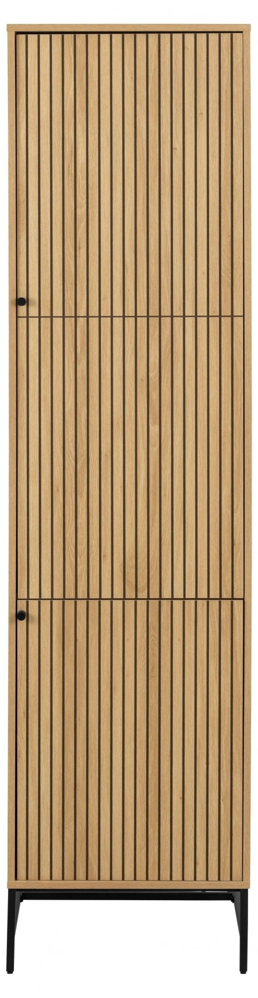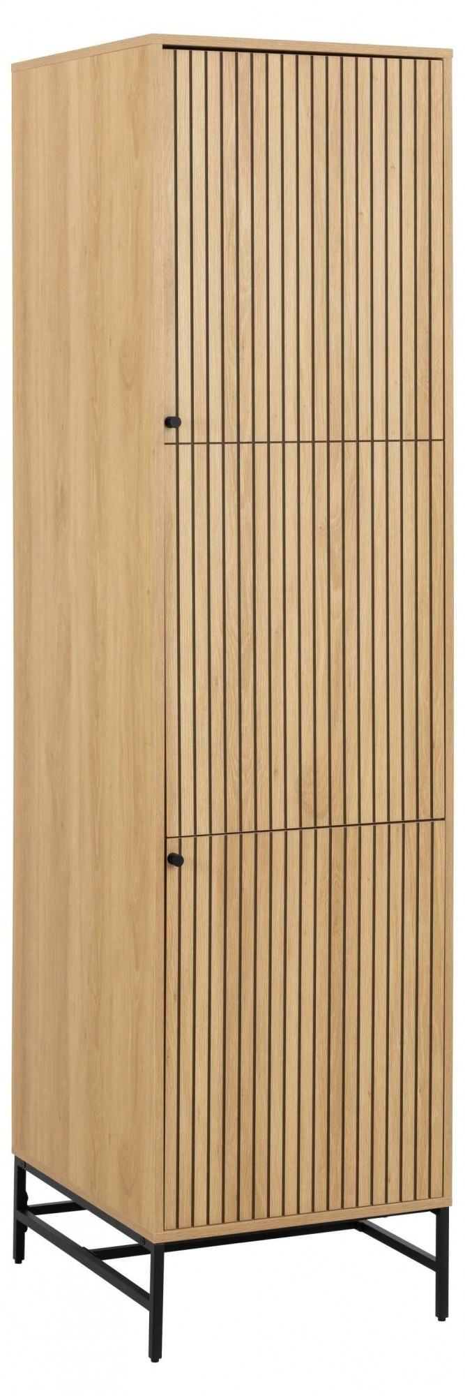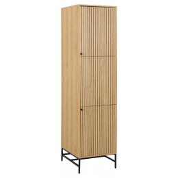 Skříň s dubovým vzhledem a lamelovým čelem ví, jak upoutat pozornost. Díky lamelovým dveřím má dobře vyvážený vzhled, což jí dodává zajímavý vzhled. Díky 2 nastavitelným policím a tyči na oblečení nabízí spoustu úložného prostoru a snadno udržovatelný povrch zvyšuje její praktičnost. Hlavní vlastnosti: Skříň s 2 dveřmi s lamelovými čely. Vybavena 2 nastavitelnými policemi a 1 tyčí na oblečení. Snadno udržovatelný povrch s vzhledem dubu. Ocelová základna lakovaná práškovou barvou na černo a o výšce 18 cm. Certifikát FSC. Navrženo designérem Lasse Cha Pedersenem. Hmotnost skříně: 51 kg Vyžaduje montáž. Rozměry kartonů: 133x61x8cm, hmotnost 17kg, 16x193x72cm, hmotnost: 39kg