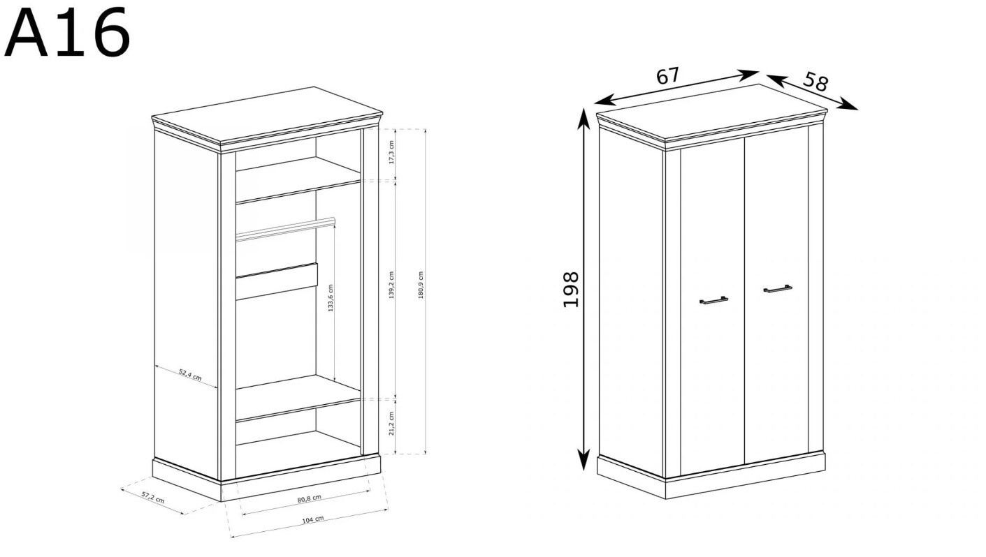 | Typ skříně | 2-dveřová skříň |