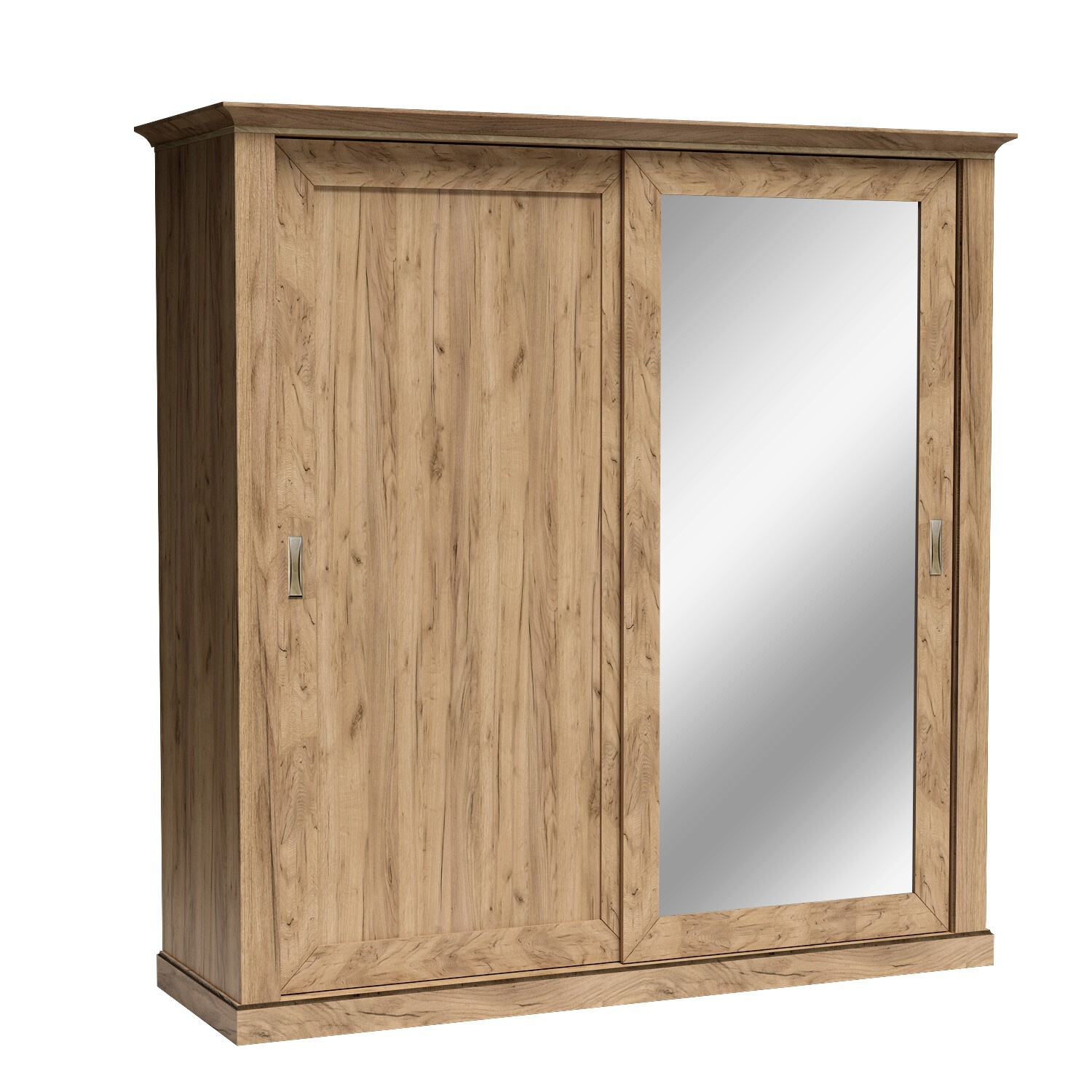 Šatní skříň z kolekce Antica se dvěma posuvnými dveřmi, z nichž jedny mají zrcadlo. Je velká a velmi prostorná, má čtyři zásuvky a osm polic. Má také vlastní část s tyčí, která umožňuje zavěšení oblečení i využití zbývajícího prostoru skříně. Nábytek je vhodný do ložnice, předsíně nebo obývacího pokoje. Lze s ním vytvořit mnoho sestav. Tato šatní skříň osloví příznivce klasického vzhledu a nevtíravé elegance. K dispozici je ve dvou barevných provedeních.