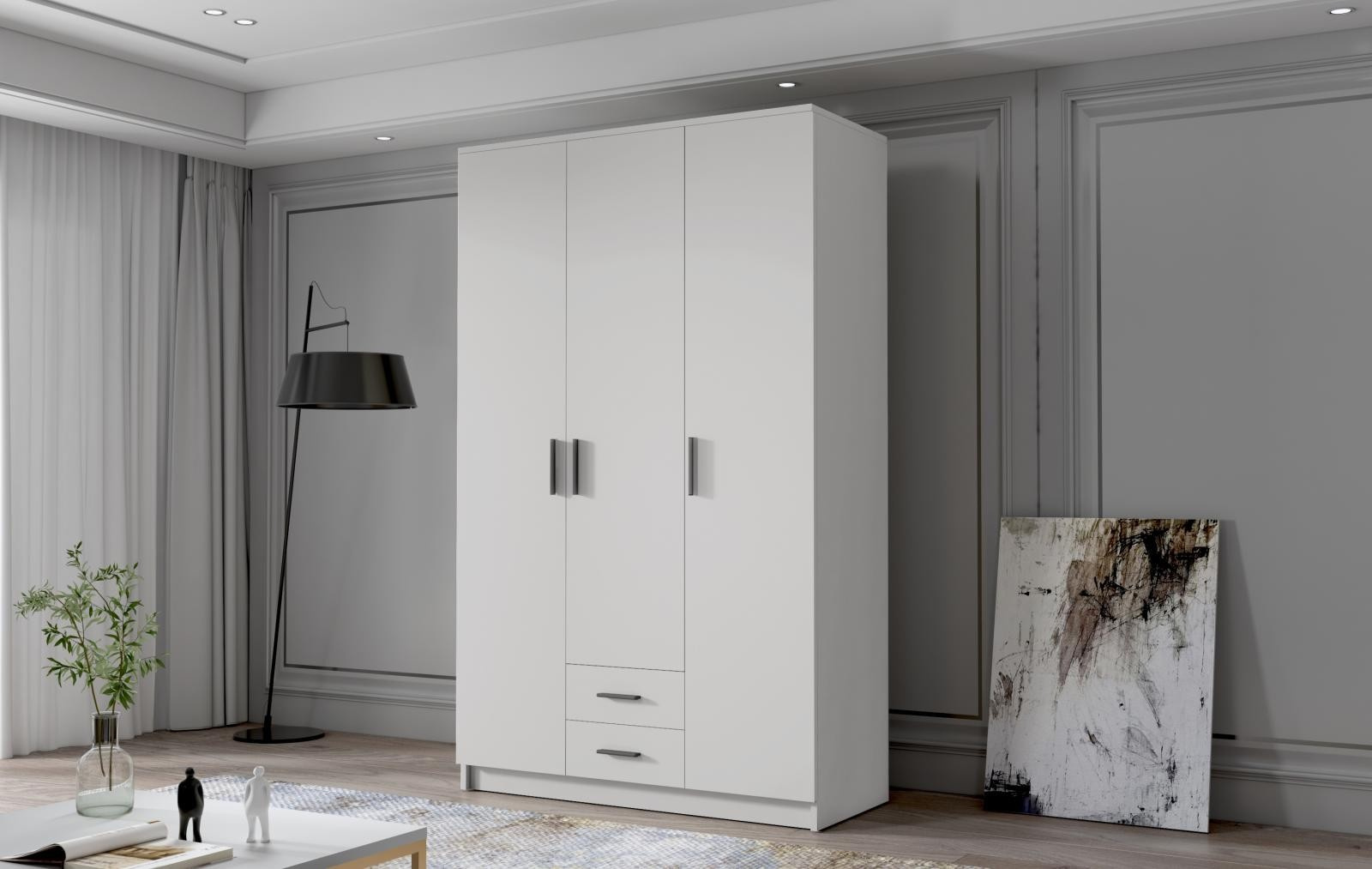 Skříň Arya I 120 - bílá/černé úchytky
