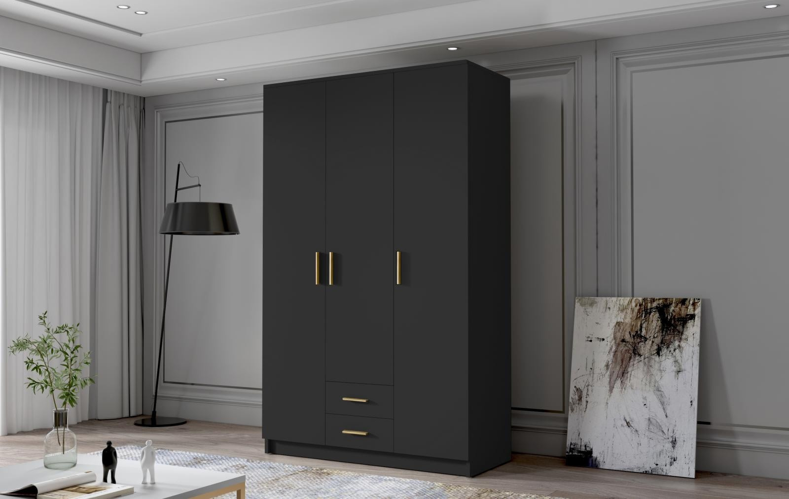 Šatní skříň Arya I v moderním designu má šířku 120 cm a je rozdělena na dvě praktické části. Vnitřní uspořádání kombinuje závěsnou tyč, pět polic a 2 šuplíky, což umožňuje přehledné a praktické rozdělení šatníku.