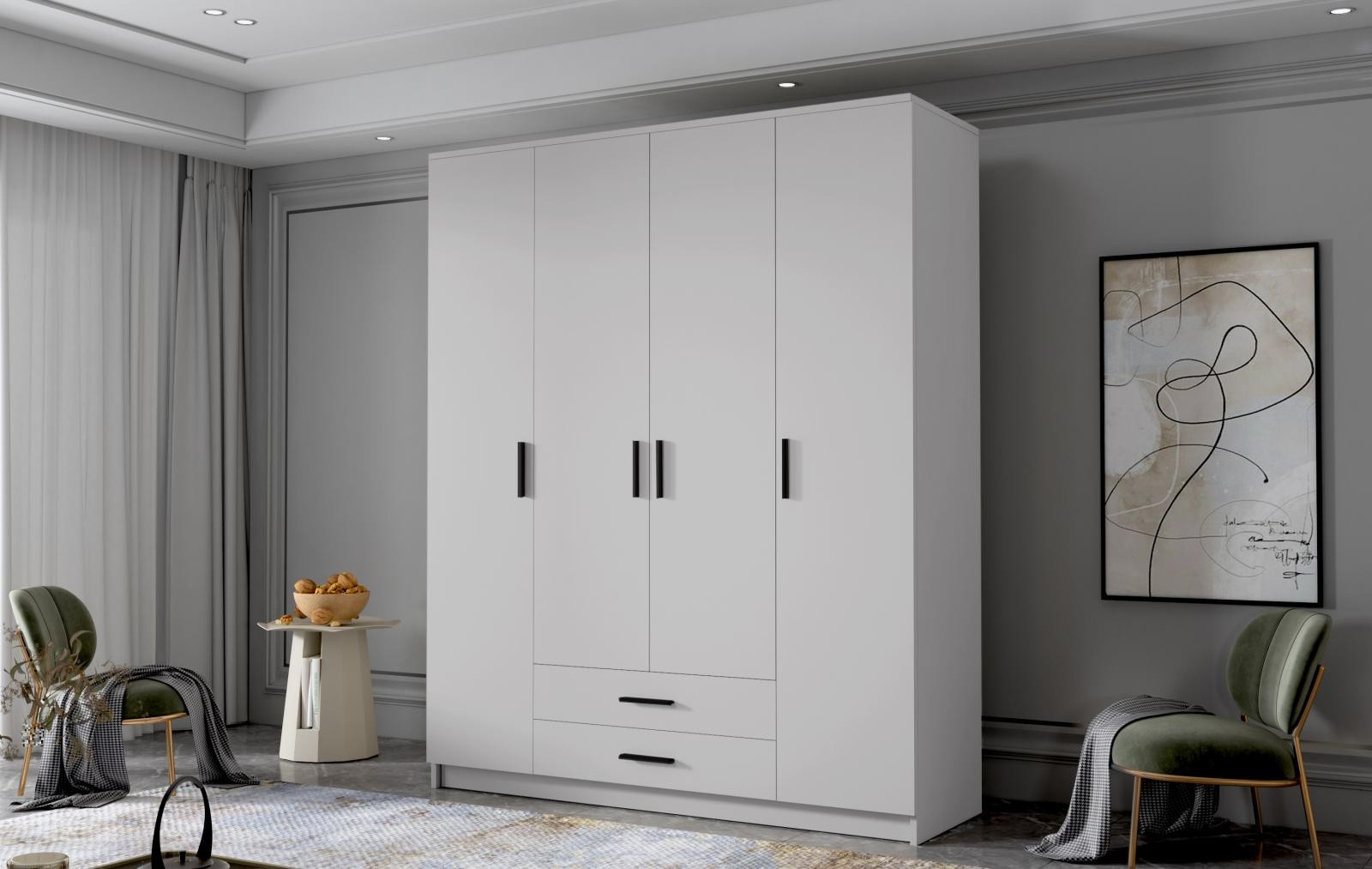 Skříň Arya I 160 - bílá/černé úchytky