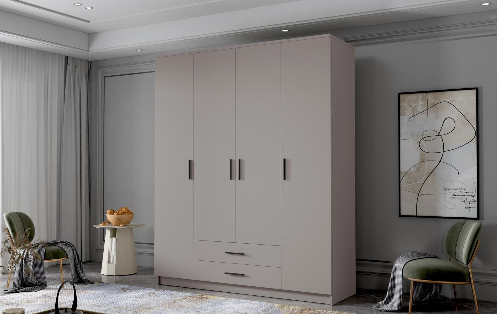 Šatní skříň Arya I v moderním designu má šířku 160 cm a je rozdělena na tři praktické části. Vnitřní uspořádání kombinuje závěsnou tyč, devět polic a 2 šuplíky, což umožňuje přehledné a praktické rozdělení šatníku.