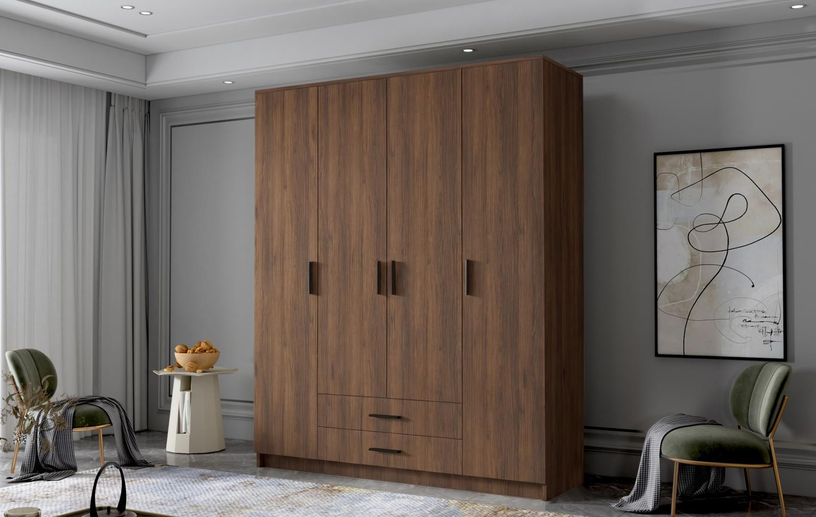 Skříň Arya I 160 - ořech/černé úchytky