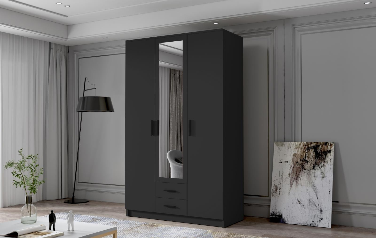 Skříň Arya II 120 - černá/černé úchytky
