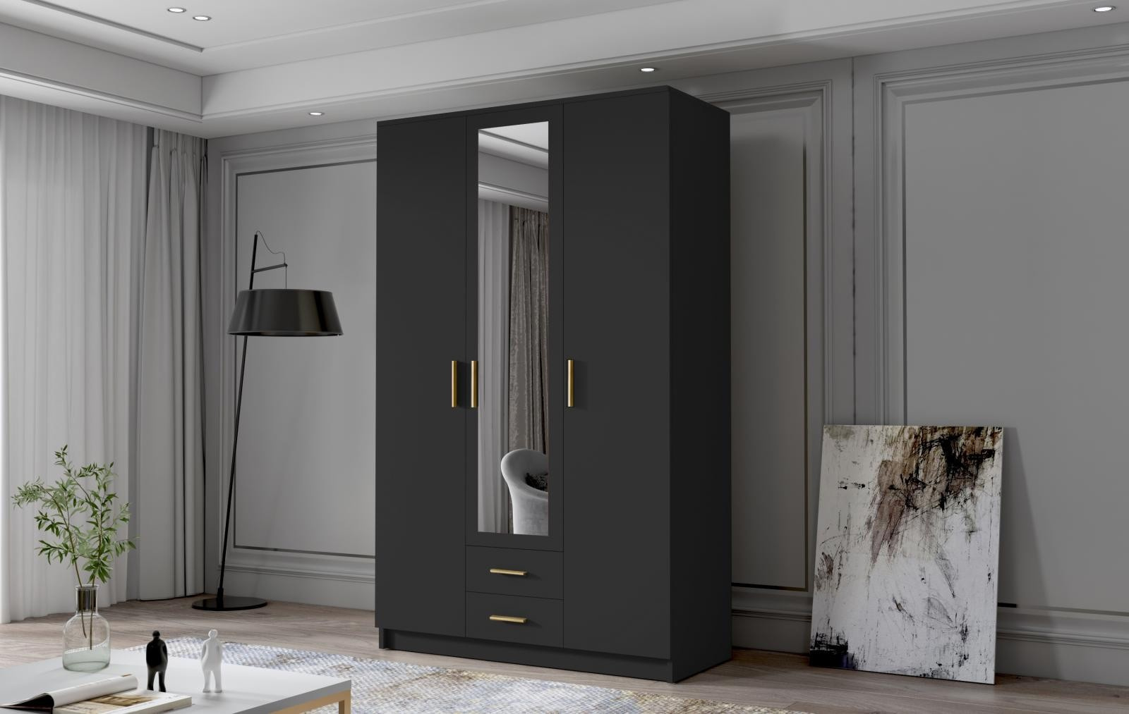 Šatní skříň Arya II v moderním designu má šířku 120 cm a je rozdělena na dvě praktické části. Vnitřní uspořádání kombinuje závěsnou tyč, pět polic a 2 šuplíky, což umožňuje přehledné a praktické rozdělení šatníku.