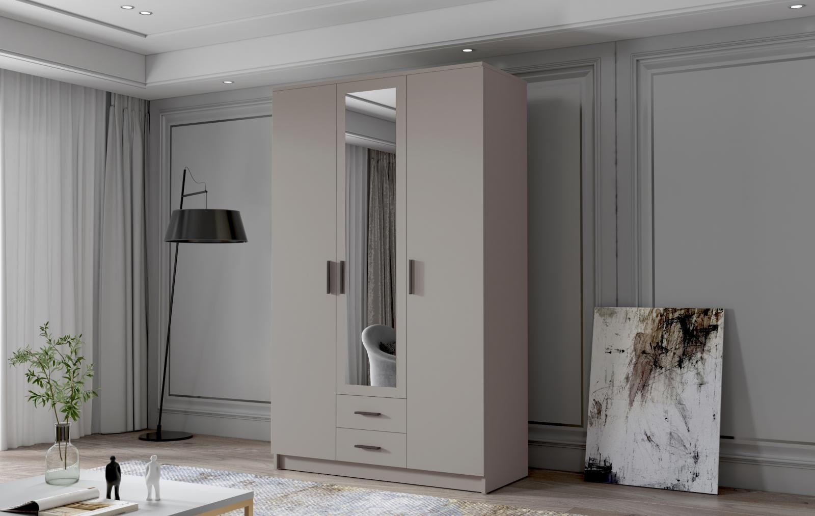 Šatní skříň Arya II v moderním designu má šířku 120 cm a je rozdělena na dvě praktické části. Vnitřní uspořádání kombinuje závěsnou tyč, pět polic a 2 šuplíky, což umožňuje přehledné a praktické rozdělení šatníku.