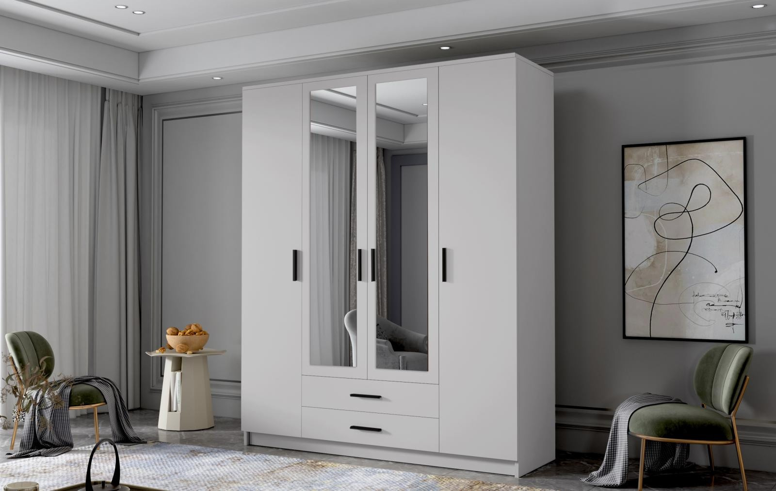 Skříň Arya II 160 - bílá/černé úchytky
