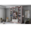 Šatní skříň Arya II v moderním designu má šířku 160 cm a je rozdělena na tři praktické části. Vnitřní uspořádání kombinuje závěsnou tyč, devět polic a 2 šuplíky, což umožňuje přehledné a praktické rozdělení šatníku.