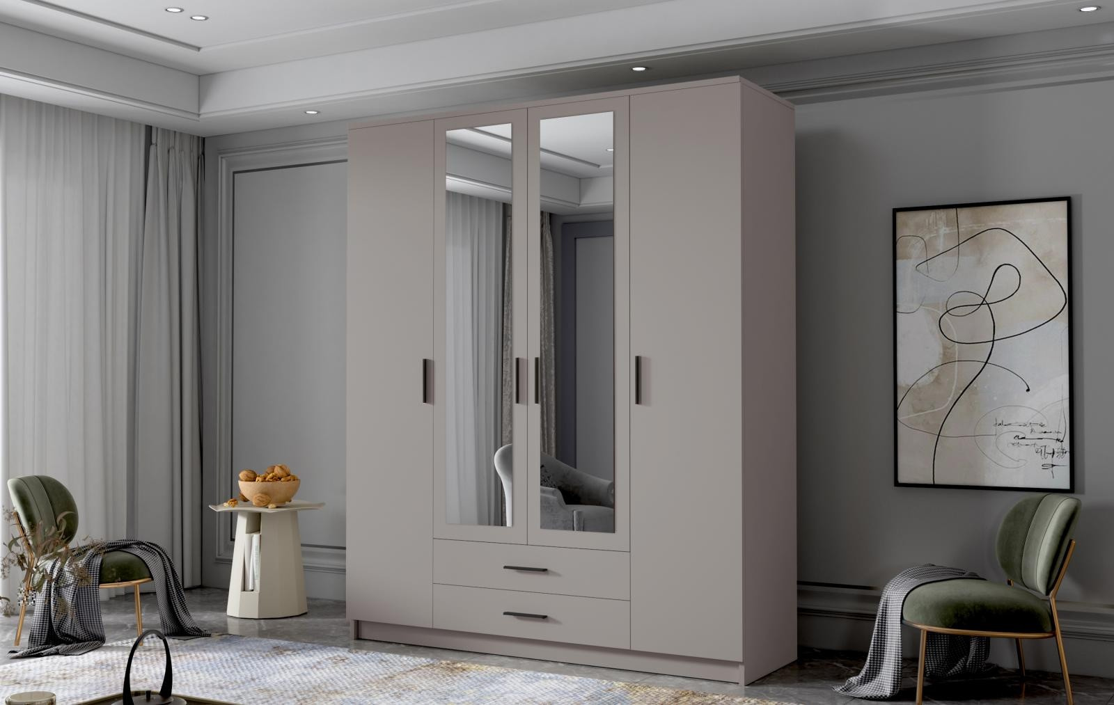 Skříň Arya II 160 - kašmír/černé úchytky
