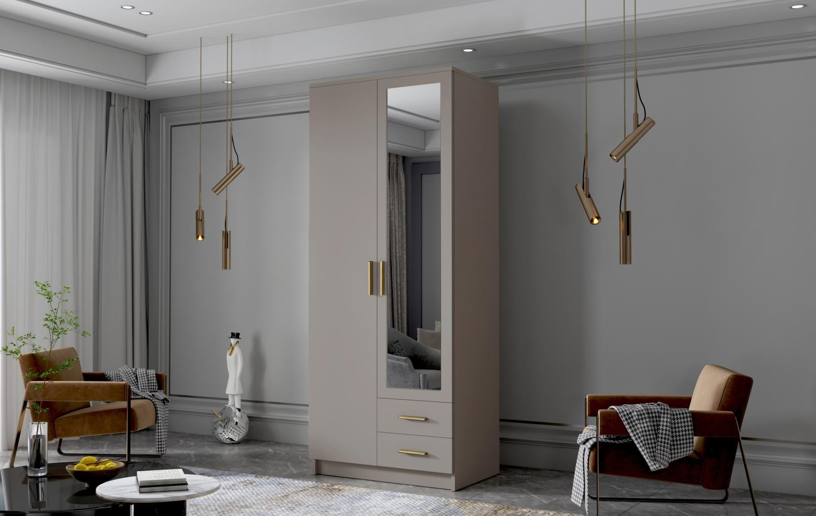 Skříň Arya II 80 - kašmír/zlaté úchytky