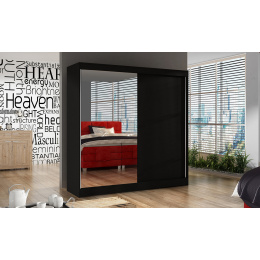 Skříň je vyrobena z kvalitního lamina. Díky svému vnitřnímu uspořádání nabízí dostatek úložného prostoru, posuvné dveře šetří prostor a zrcadlo ho opticky zvětšuje. Skříň je vhodná do ložnice, dětského nebo studentského pokoje, do předsíně i kanceláře. Vnitřní uspořádání skříně je vyobrazeno na fotografii. Skříň je dodávána v demontu. Součástí je i skleněné zrcadlo, které je nalepeno na jedné části dveří skříně a také montážní plánek včetně všech potřebných spojovacích materiálů. Vyobrazené dekorace nejsou v ceně.