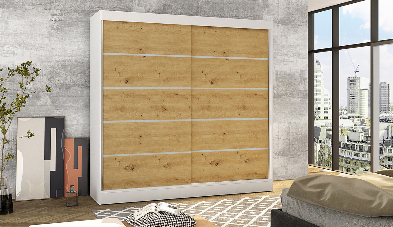 Šatní skříň BAJA IV 200, Bílá/Dub artisan