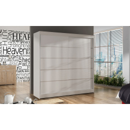 Skříň je vyrobena z kvalitního lamina. Díky svému vnitřnímu uspořádání nabízí dostatek úložného prostoru a posuvné dveře prostor šetří. Skříň je vhodná do ložnice, dětského nebo studentského pokoje, do předsíně i kanceláře. Vnitřní uspořádání skříně je vyobrazeno na fotografii. Skříň je dodávána v demontu a součástí je montážní plánek včetně všech potřebných spojovacích materiálů. Vyobrazené dekorace nejsou v ceně.