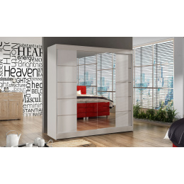 Skříň je vyrobena z kvalitního lamina. Díky svému vnitřnímu uspořádání nabízí dostatek úložného prostoru, posuvné dveře šetří prostor a zrcadlo ho opticky zvětšuje. Skříň je vhodná do ložnice, dětského nebo studentského pokoje, do předsíně i kanceláře. Vnitřní uspořádání skříně je vyobrazeno na fotografii. Skříň je dodávána v demontu. Součástí jsou i skleněná zrcadla, která jsou nalepena na dveřích skříně a také montážní plánek včetně všech potřebných spojovacích materiálů. Vyobrazené dekorace nejsou v ceně.