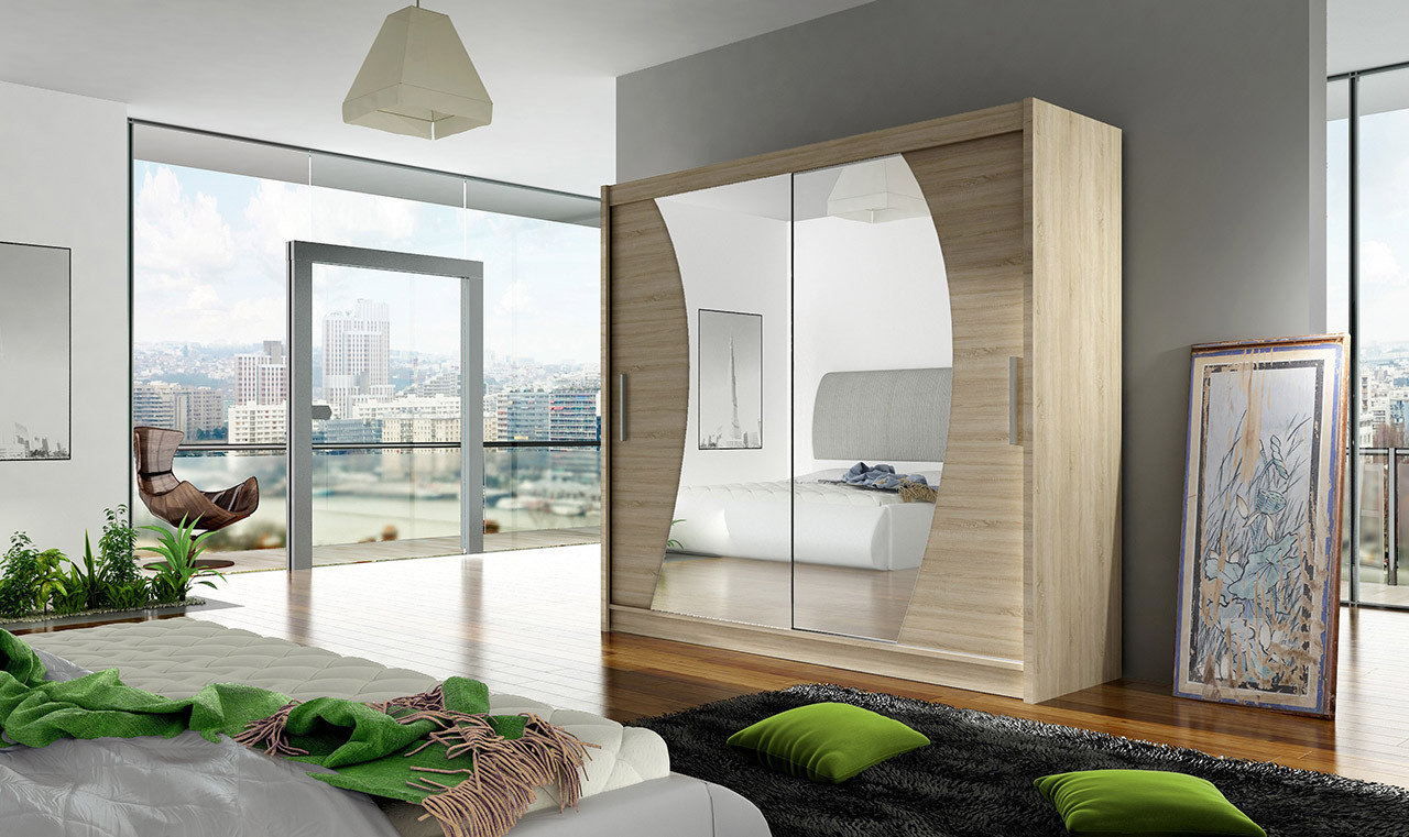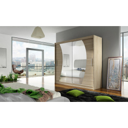 Skříň Berger s posuvnými dveřmi, je vyrobena z kvalitního lamina o síle 16 mm a hrany jsou ukončeny ABS lištou. Vodící lišty jsou vyrobeny z odolného hliníku a splňují požadavky pro každodenní užívání. Skříň je doplněna zrcadly zaříznutými do oblouku, která jí dodávají elegantní vzhled a místnost opticky zvětší a prosvětlí. Nabízíme ji ve čtyřech odstínech. Díky svým rozměrům a uspořádání poskytuje dostatek úložného prostoru. Skříň je dodávána v demontu a součástí je montážní plánek včetně všech potřebných spojovacích materiálů. Vyobrazené dekorace nejsou v ceně.