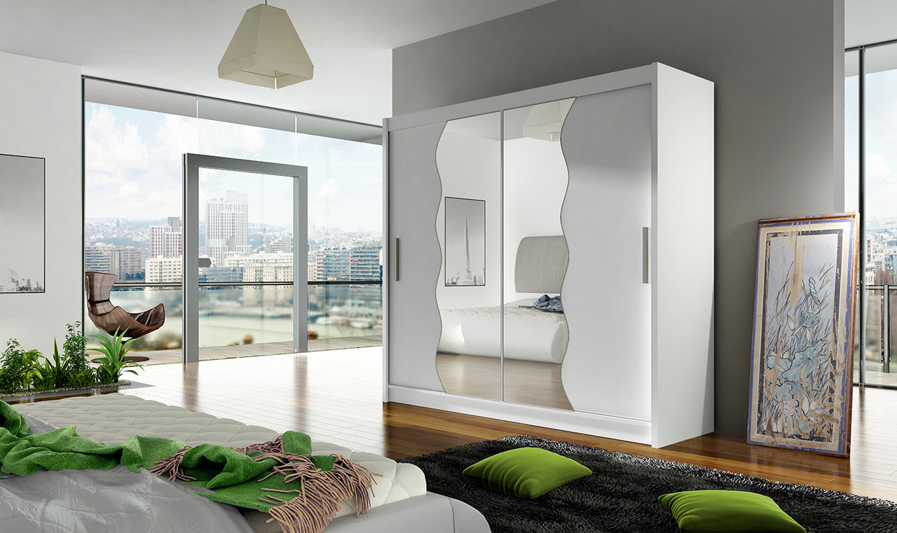 Skříň Berger s posuvnými dveřmi, je vyrobena z kvalitního lamina o síle 16 mm a hrany jsou ukončeny ABS lištou. Vodící lišty jsou vyrobeny z odolného hliníku a splňují požadavky pro každodenní užívání. Skříň je doplněna vlnitými zrcadly, která jí dodávají elegantní vzhled a místnost opticky zvětší a prosvětlí. Nabízíme ji ve čtyřech odstínech. Díky svým rozměrům a uspořádání poskytuje dostatek úložného prostoru. Skříň je dodávána v demontu a součástí je montážní plánek včetně všech potřebných spojovacích materiálů. Vyobrazené dekorace nejsou v ceně.